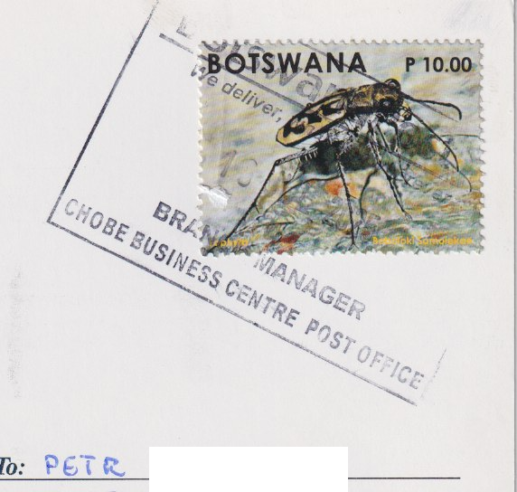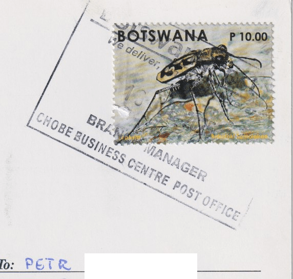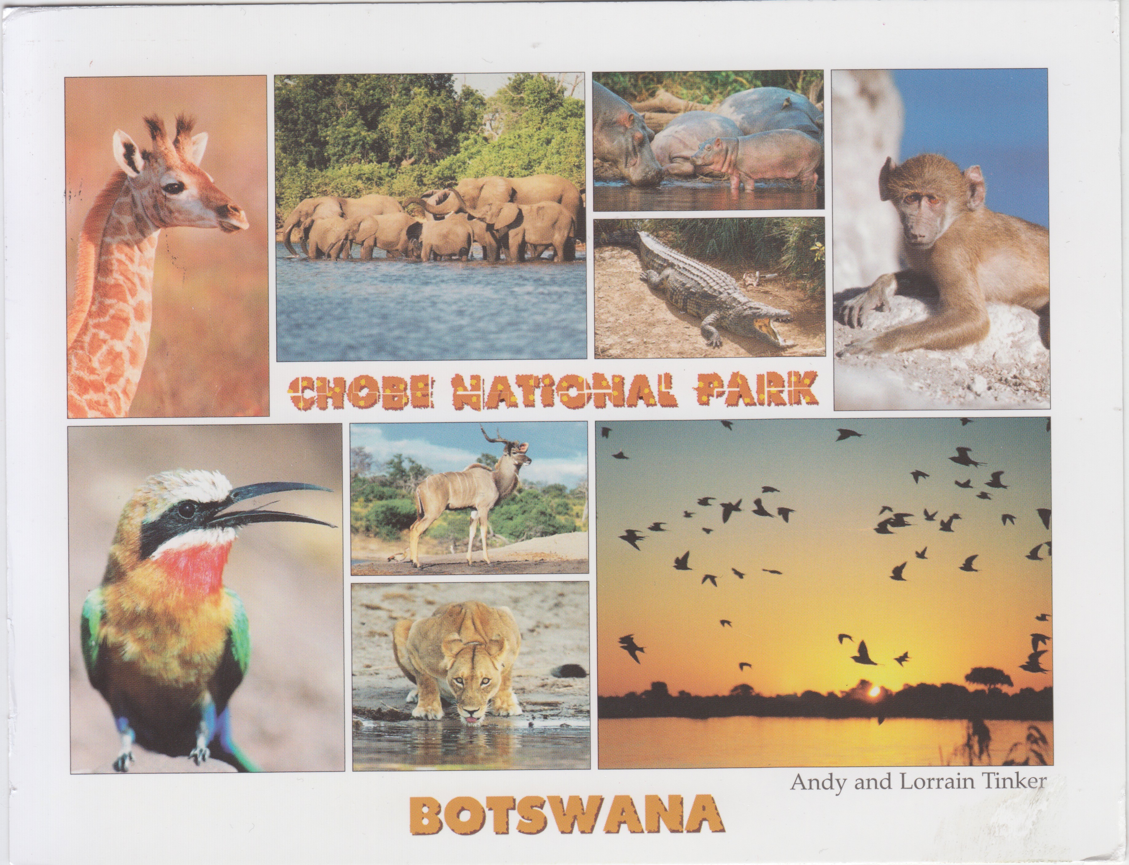 V pondělí 27. prosince 2016 jsem ve své schránce našel vůbec první pohlednici z Botswany, této jihoafrické země. Botswana získala nezávislost v roce 1966 a představuje zemi s bohatými přírodními zdroji, rozlehlými savanami. Jedním z rysů současného života je hromadné přesídlení tradičních nomádů etnika San do rezervací, neboť na jejich původním území byly otevřeny velké diamantové doly. Křováci San byli v 60. a 70. letech předmětem rozsáhlých antropologických výzkumů a dnes již jejich společnost a kultura prakticky neexistuje.V pátek 30. prosince 2016 do mé poštovní schránky dorazila druhá pohlednice z Botswany, zobrazující národní park Chobe.Až po dlouhých devíti letech, na konci srpna 2025, jsem do své poštovní schránky dostal další, tedy již třetí pohled z Botswany, zachycující v roce 2022 otevřený Okavango River Bridge, důležitou dopravní spojnici, nacházející se na severu země, nedaleko od hranic s Namibií.