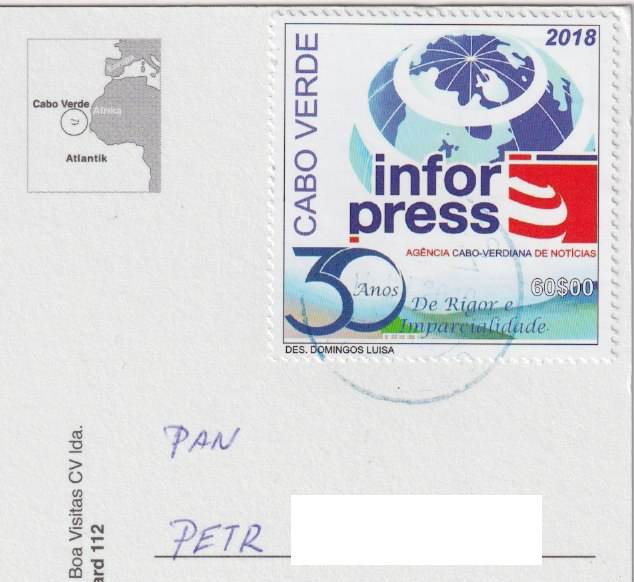 Kapverdy (Republika Cabo Verde) jsou ostrovní země, náležející k Západní Africe, skládající se z deseti původně sopečných ostrovů. Od roku 1462 byly portugalskou kolonií a nezávislost získaly v roce 1975. Jedná se o unikántí zemi, ležící kulturně na rozhraní několika civilizací – Africké a Jihoamerické. Jsou zde viditelné silné kulturní vlivy portugalské a brazilské. Po dlouhá staletí byly Kapverdy vítanou zastávkou pro mnoho lodí na cestě Atlantikem směrem na jih k Mysu Dobré naděje… Mé dva první pohledy z Kapverd jsou snad přímo ikonickým obrazem této země a kultury… jeden z nich, jak to naneštěstí bývá obvyklé u pohledů ze zámoří, dostal “zabrat” pravděpodobně v poštovních třídících strojích…Mé dva další pohledy z Kapverd dorazily do mé poštovní schránky až v roce 2023.