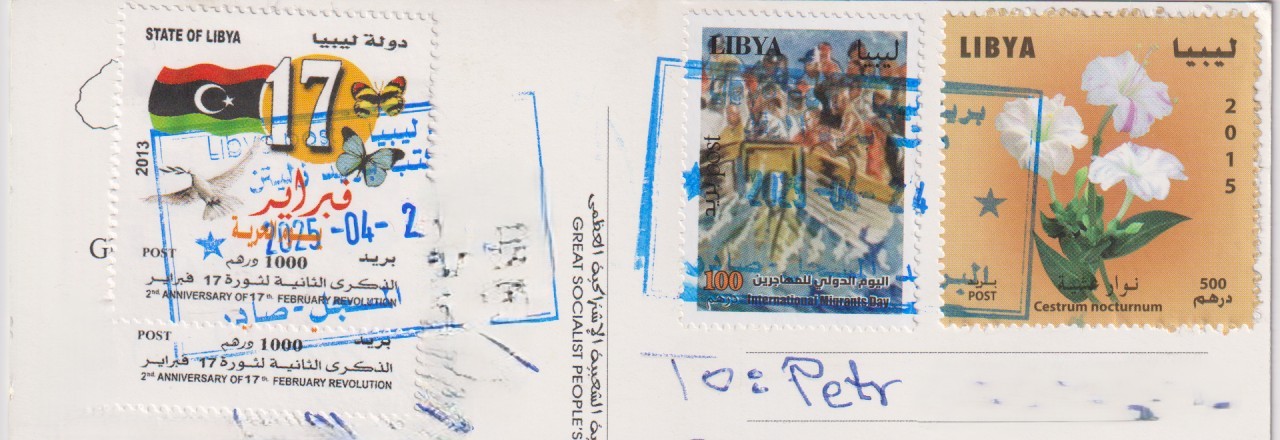 V pondělí, 19. května 2025, do mé poštovní schránky přibyl první velevzácný pohled z Libye. Od roku 2017 se země nazývá oficiálně “State of Libya”. Posledním velkým milníkem bylo svržení diktátorského režimu Muamarra Kaddáfího v roce 2011 v rámci “Arabského jara”. V současnosti je Libye po delším období občanské války (2014–2020) konečně relativně stabilnější. Od listopadu 2024 v zemi vládne tzv. Kabinet národní jednoty v čele s Abdulem Hamidem Dbeibehem. Pohlednice, kterou jsem dostal, je pozoruhodná tím, že byla vytištěna ještě za starého režimu, pochází z období před rokem 2011.