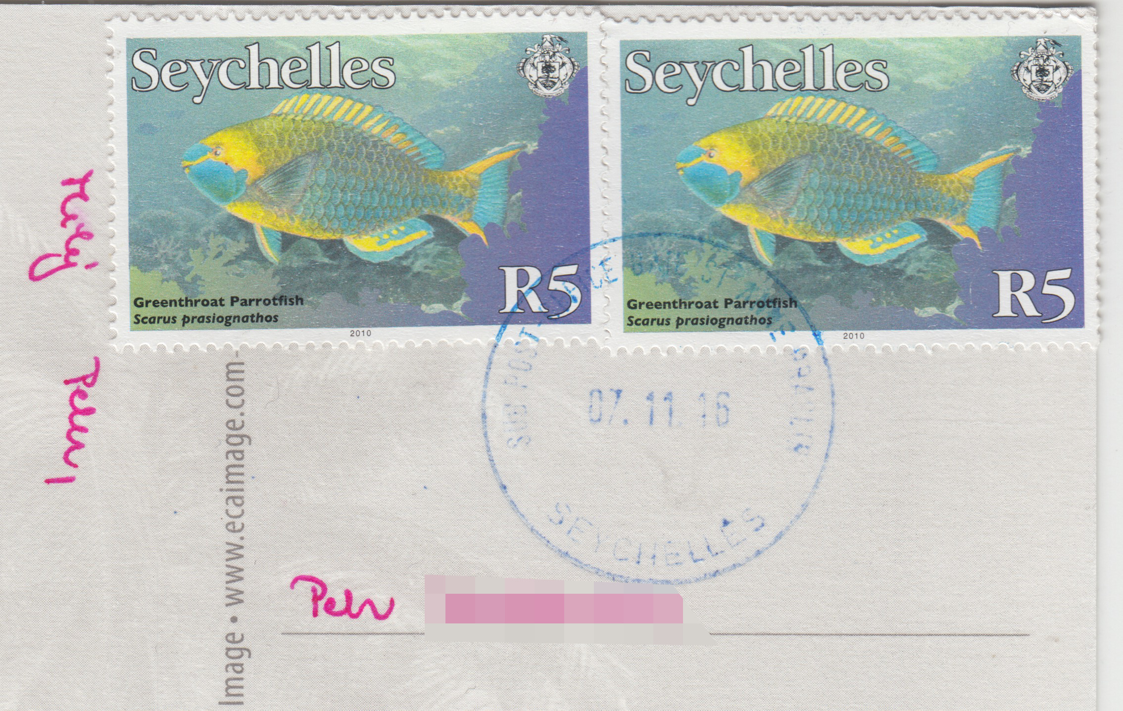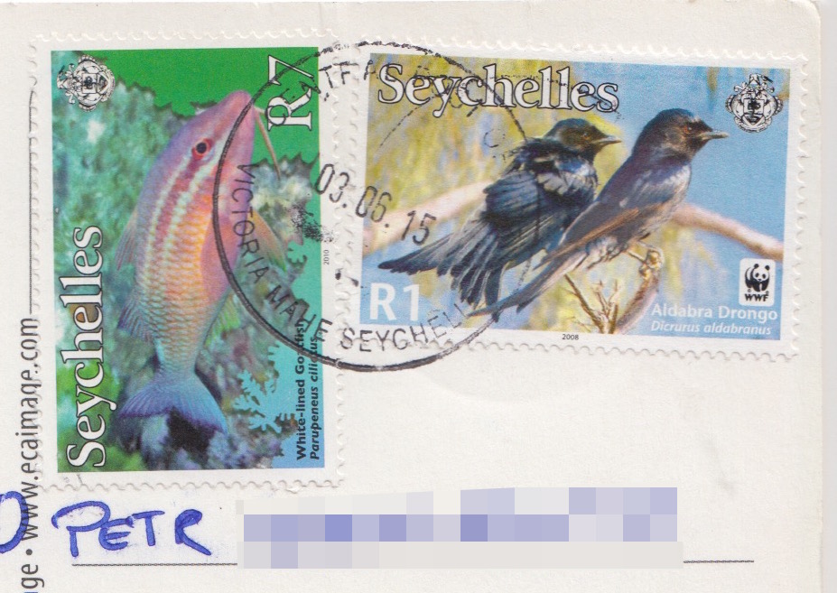 Ve středu 24. července 2018 jsem do své poštovní schránky dostal dva krásné pohlednice ze Seychel od Sabrine.