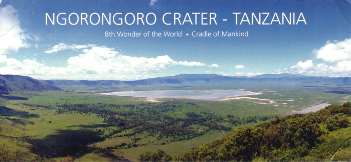 V pátek 24. srpna do mé poštovní schránky dorazil s notným zpožděním, ale přesto, poslední pohled z dubnové ho swapu z Tanzánie. Zobrazuje kráter Ngorongoro. Ten je součástí Kráterové vrchoviny v oblasti Arusha a Manyara v severní Tanzanii. Oblast je součástí světového dědictví UNESCO a je celá vyhlášena přírodní rezervací. Je to nesmírně stará kulturní oblast, v blízké Olduvaji byly nalezeny přesvědčivé důkazy o tom, že hominidé obývali tuto oblast již před 3 miliony let. Kráter Ngorongoro je celosvětově největší neaktivní sopečná kaldera, je 600 metrů hluboký a pokrývá plochu přibližně 260 kilometrů čtverečných.