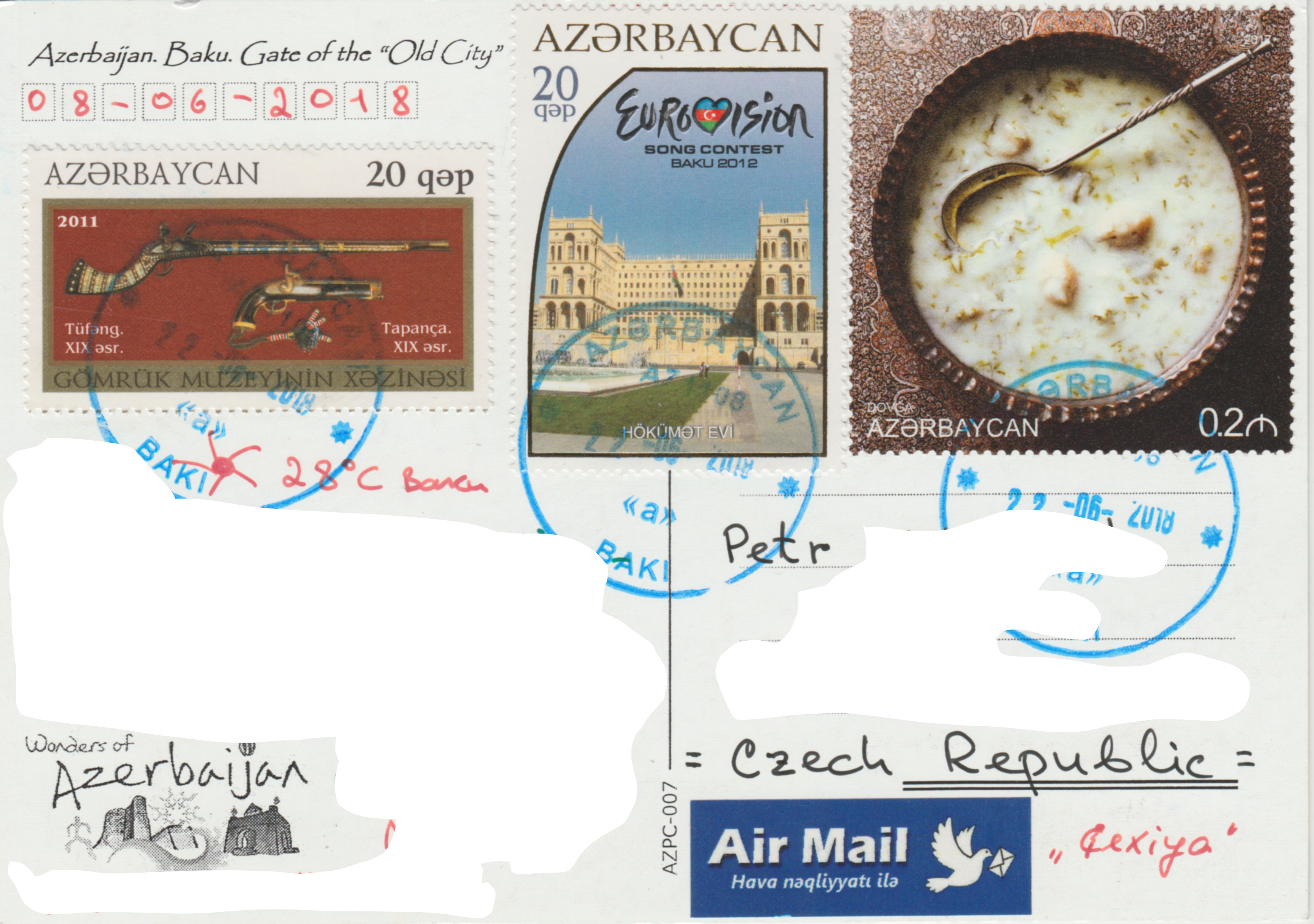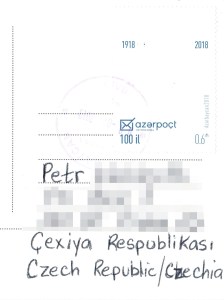 V úterý 15. ledna 2019 jsem do své poštovní schránky dostal pohlednici od cestovatele Matthewa, zachycující mapu Azerbajdžánu, včetně regionu Náhorního Karabachu, který je ovšem de facto nezávislou republikou a stran jeho nezávislosti probíhá dlouholetý ozbrojený spor s Arménií.