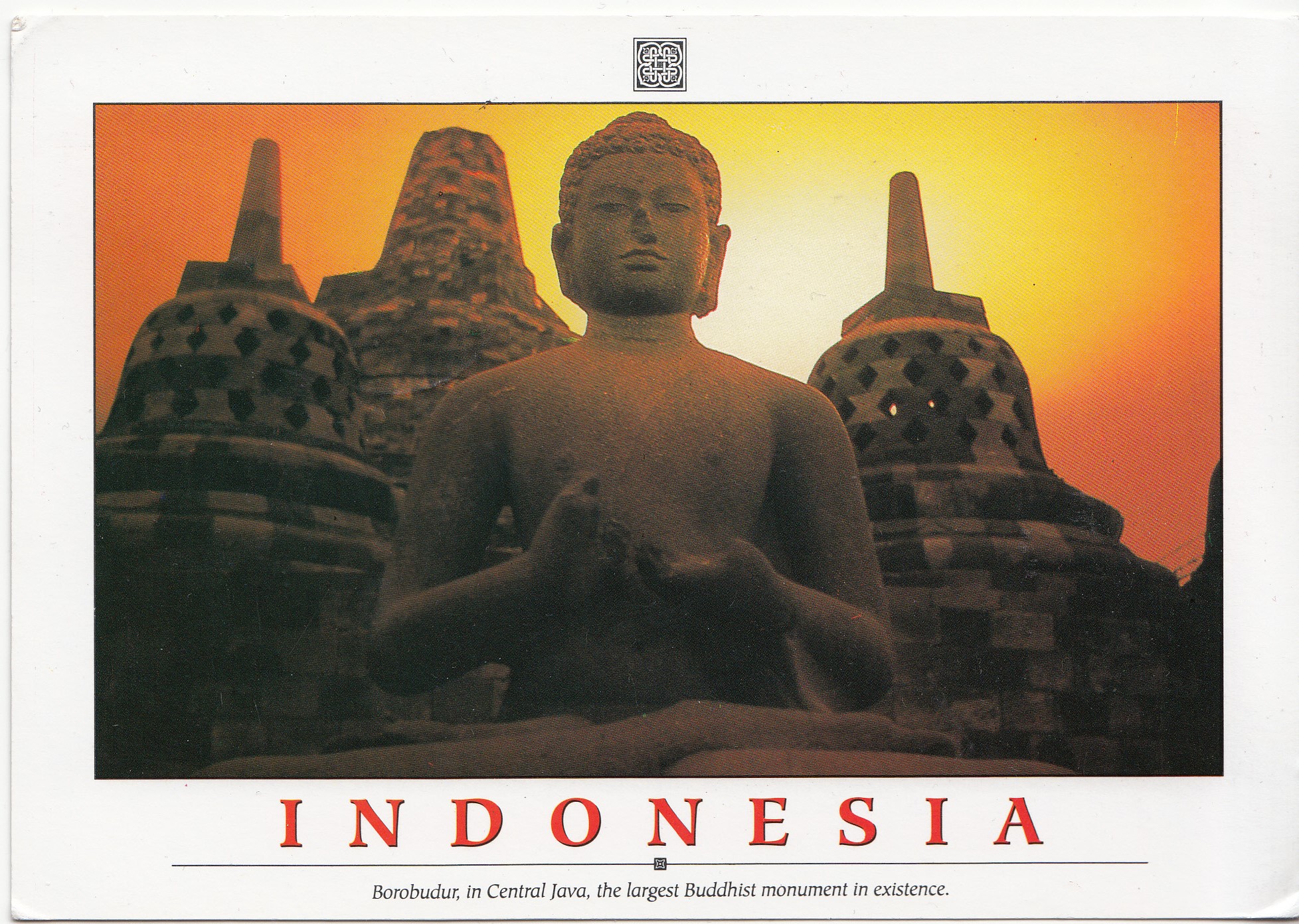 Po většinu roku 2021 i první polovinu roku 2022 bylo poštovní spojení s Indonésií přerušené kvůli pandemii Covid-19. Pohledy, které mi swapperka Desy poslala v červenci 2021, došly v červnu 2022… Přišly mi tak celkem tři pozoruhodné kulturně-historické pohlednice.