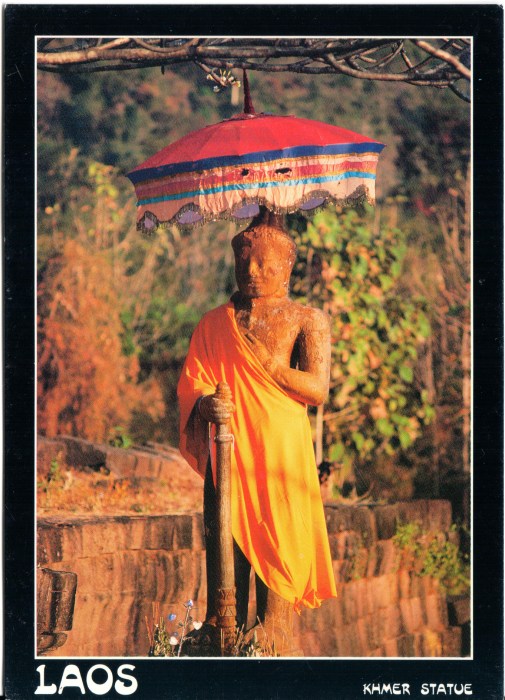 V úterý 17. dubna 2018 jsem dostal svoji čtvrtou pohlednici z Laosu, zobrazuje starou khmerskou sochu v lokalitě Wat Phu během každoročních oslav. Socha zpodobňuje prince Kammathu, postavu z 12. století.