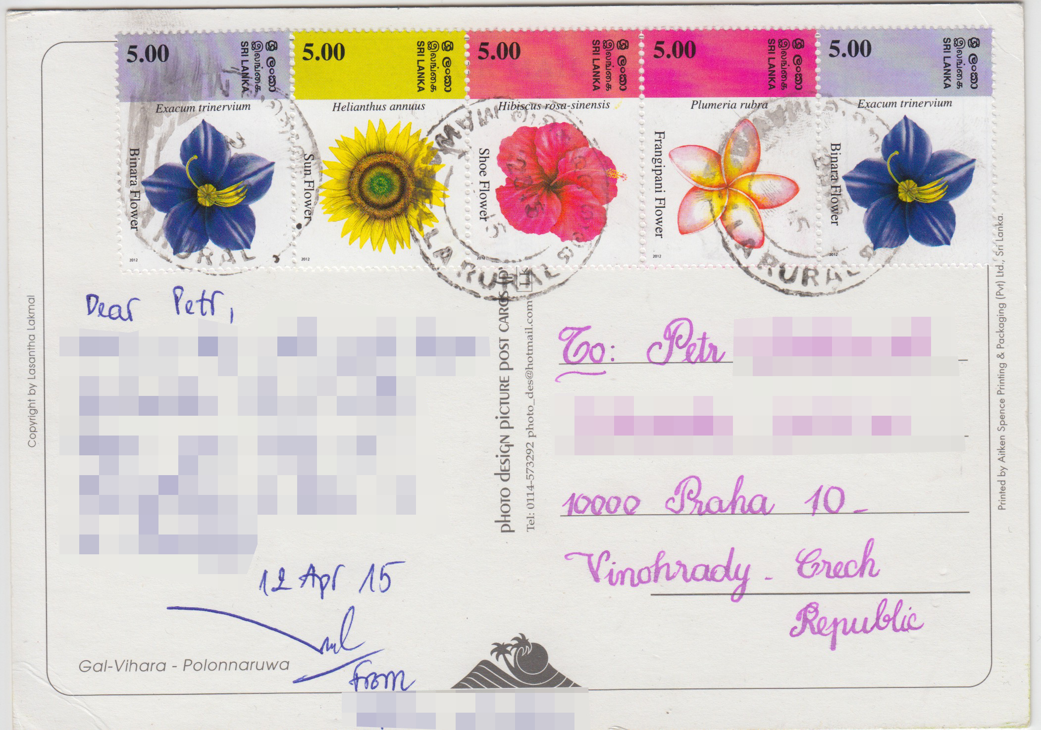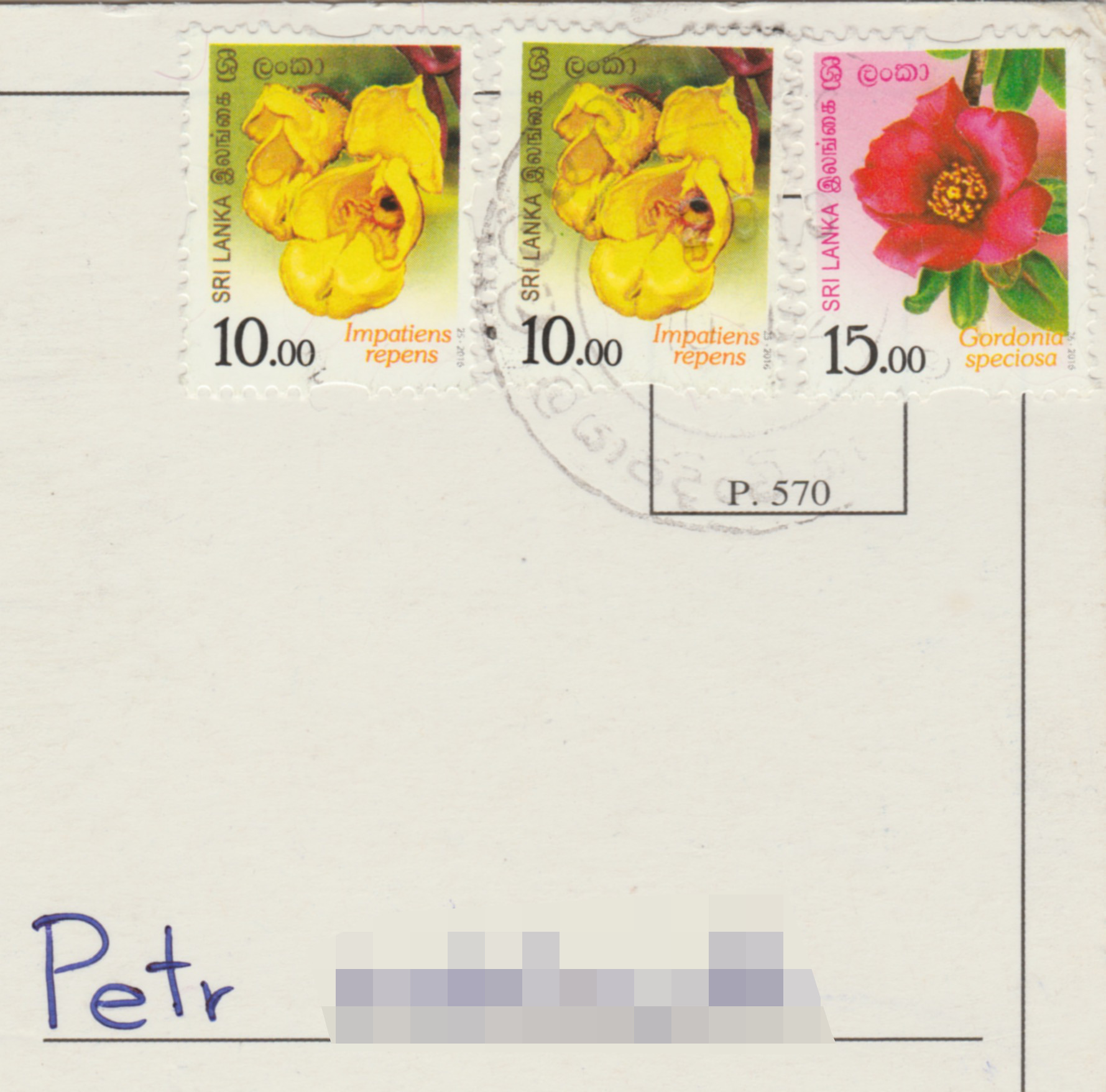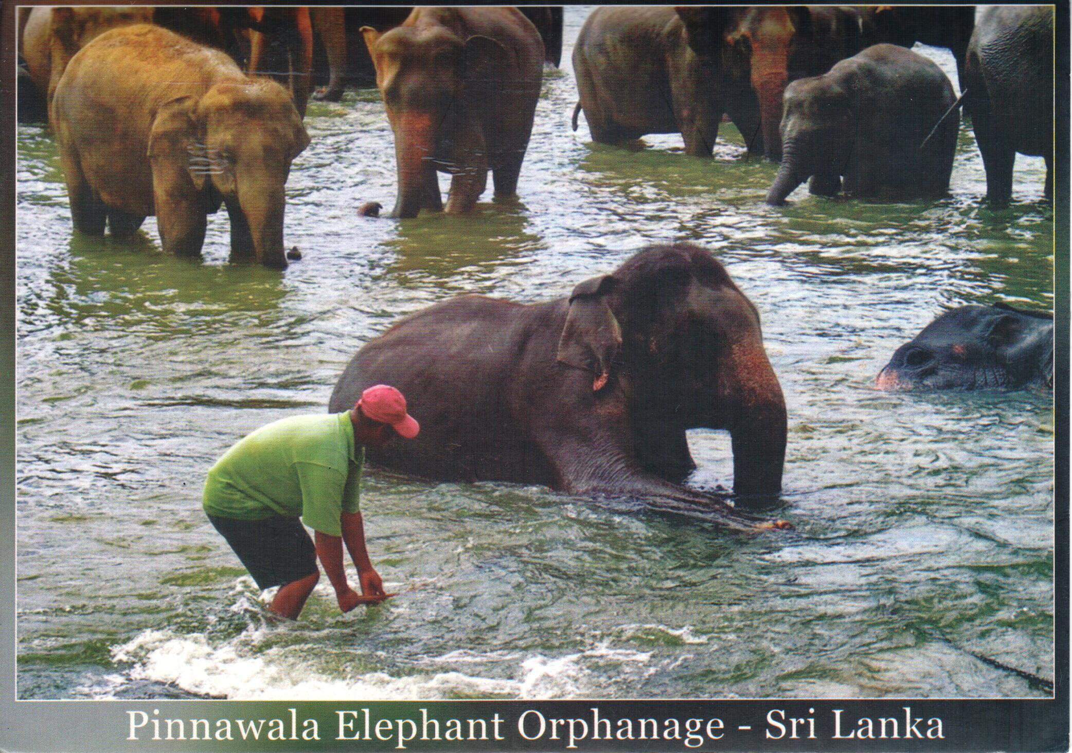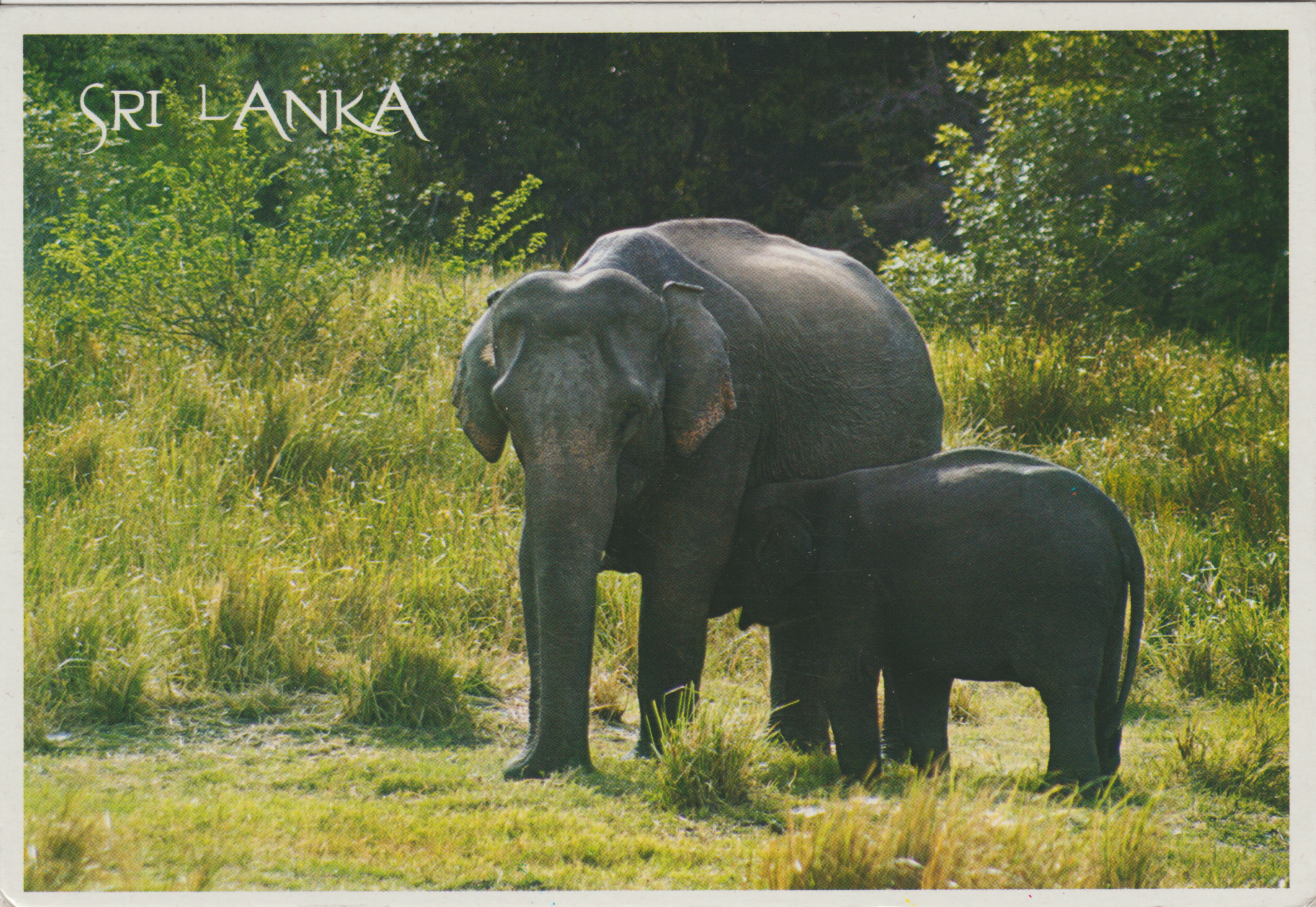 V pátek 16. června 2023 jsem dostal tuto krásnou pohlednici ze Srí Lanky, zachycující skupinu sami slona cejlonského (Elephas maximus maximus), se slůnětem. Srílanští sloni jsou největší ze všech asijských slonů, dosahují v kohoutku až 3,5 metru a Srí Lanka je teritoriem s nejvyšší hustotou výskytu slonů na světě.