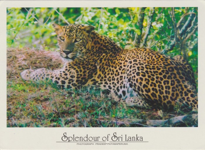 V říjnu 2022 jsem v rámci svého swapu ze San Marina dostal tuto krásnou pohlednici ze Srí Lanky, zachycující leoparda ve skoku.