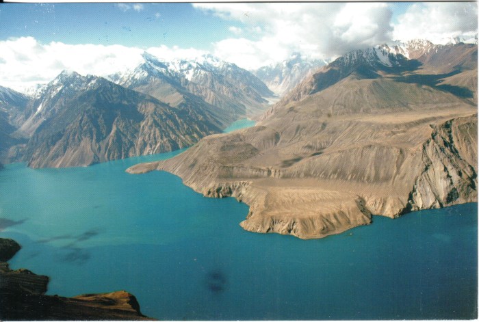 V pátek 24. srpna 2018 jsem do své poštovní schránky dostal překrásnou čtvrtou pohlednici z Tádžikistánu. Zachycuje pohled na Sarezské jezero. To je naprosto unikátní v mnoha ohledech. Zaprvé se nachází v nadmořské výšce 3263 metrů. Zadruhé je několik set metrů hluboké a zatřetí vzniklo až v roce 1911, kdy silné zemětřesení způsobilo velké sesuvy půdy a přehrazení toku řeky Murghab. Jezeru se nachází v pohoří Pamír. Místní seismologové upozorňují, že zemětřesením vzniklá hráz je nestabilní a při dalším silném zemětřesení může dojít k jejímu katastrofickému protržení. Jezero Sarez je tedy možná jen dočasným…