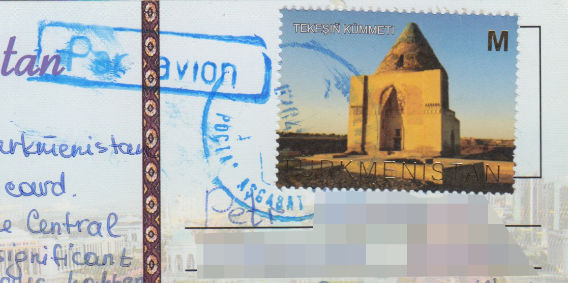 Můj druhý pohled z Turkmenistánu dorazil v pondělí 11. května 2015 od Leylashi a zobrazuje centrum hlavního města Ašchabadu. Dorazil i s překrásnou známkou, zachycující starou islámskou architekturu.