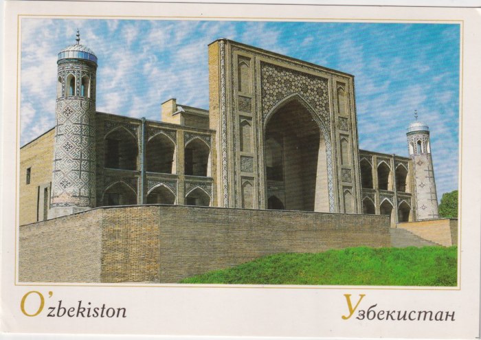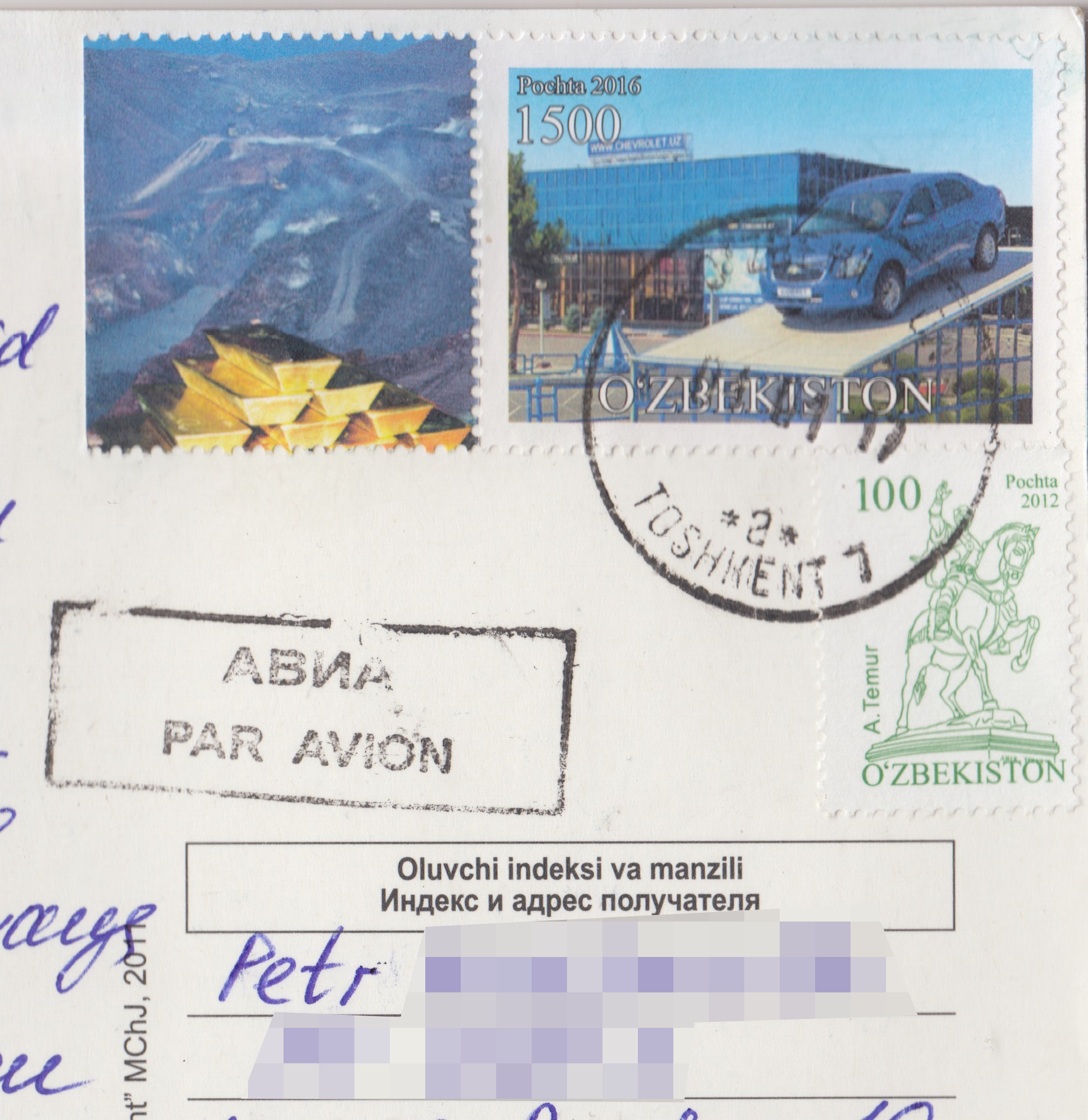 V pondělí 16. ledna jsem ve své poštovní schránce objevil dvě krásné pohlednice z Uzbekistánu od Alexandry.