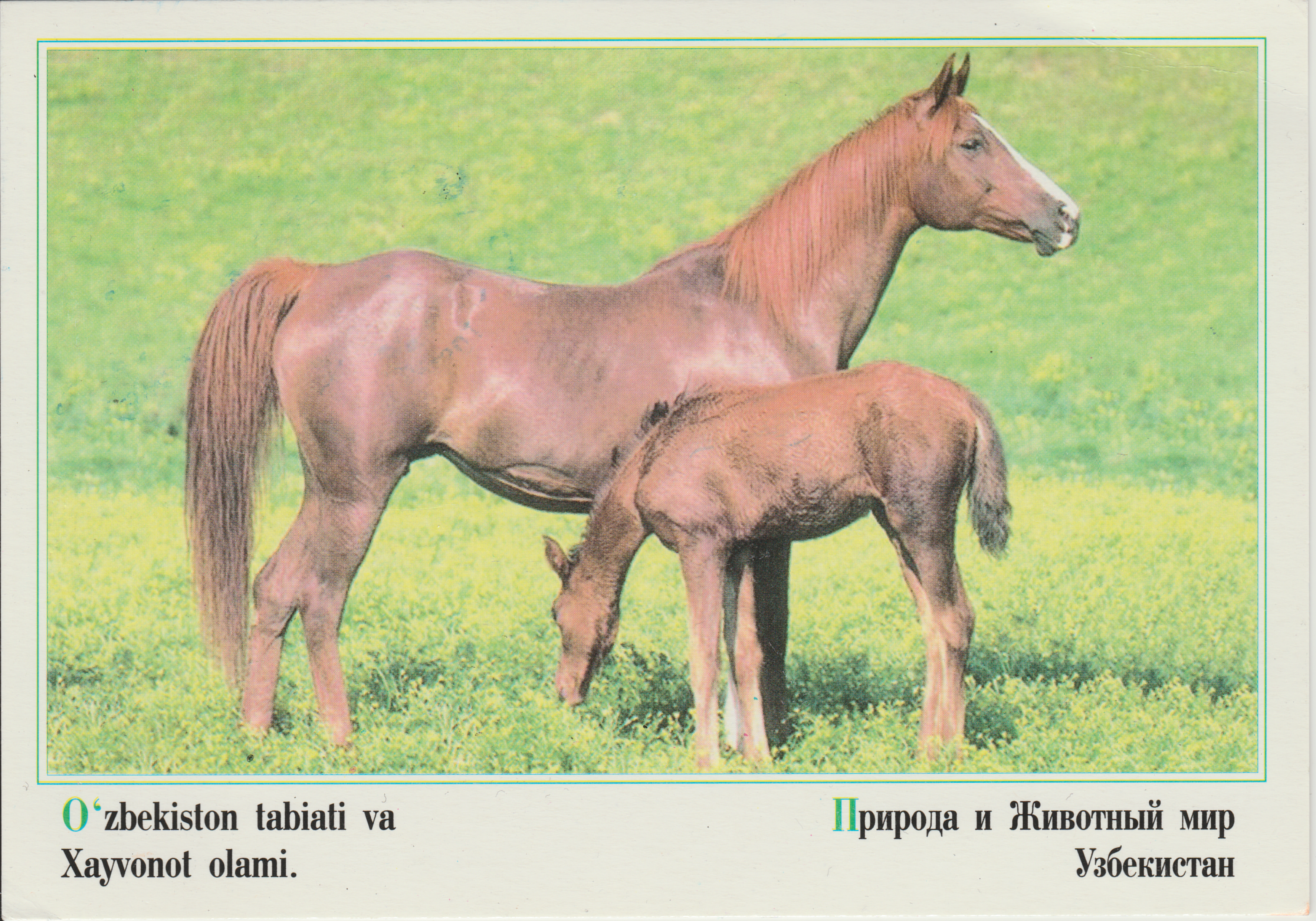 Na konci února jsem dostal další pohlednici z Uzbekistánu, tentokrát zachycující jedno ze středoasijských unikátních koňských plemen, takzvaného achaltekinského koně.