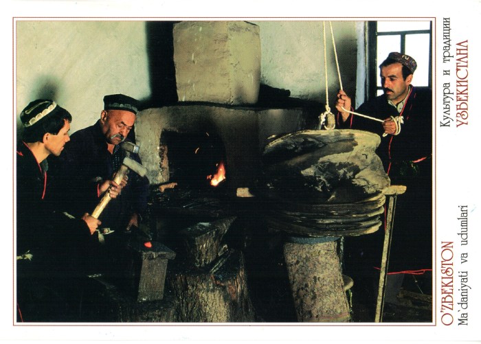 Ve středu 18. dubna 2018 jsem od Igora dostal tuto pohlednici, zachycující kováře při výrobě tradičních nožů v městě Chust ve ferghanském údolí.