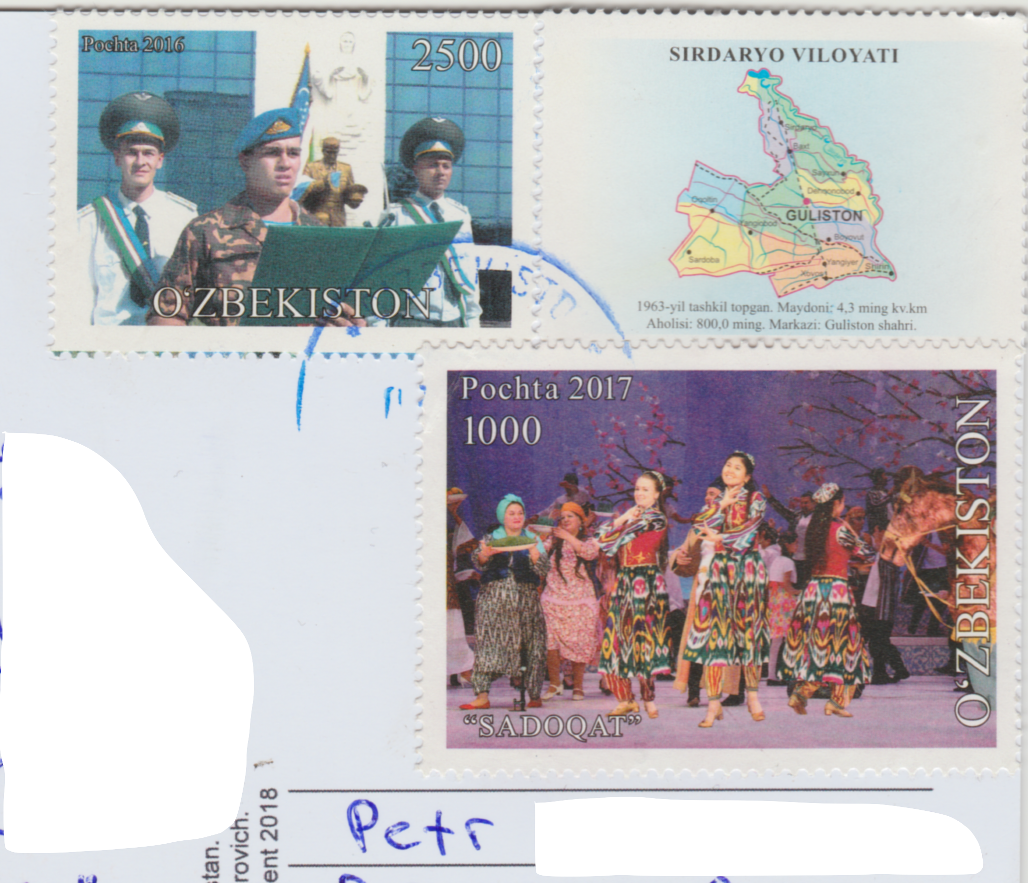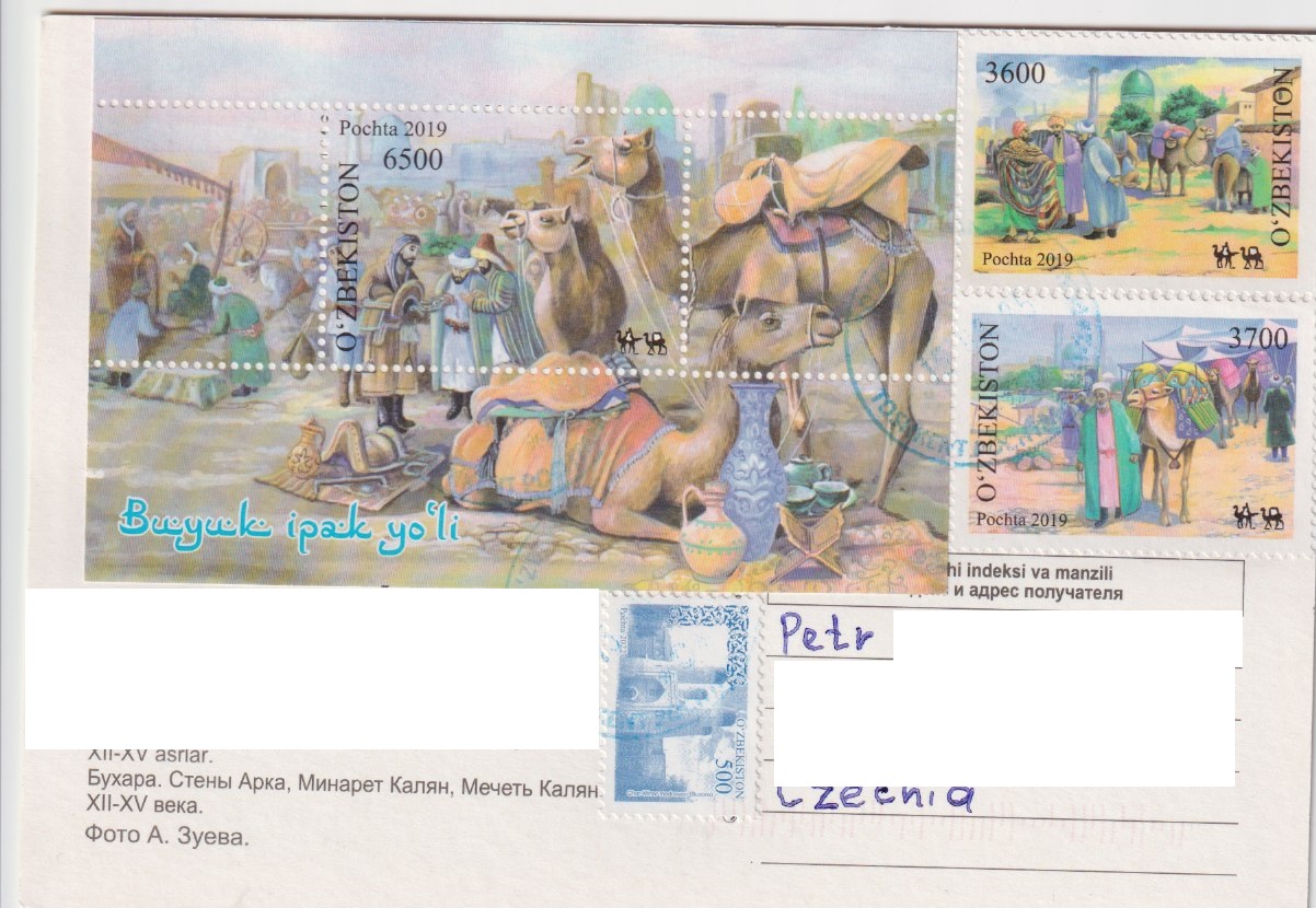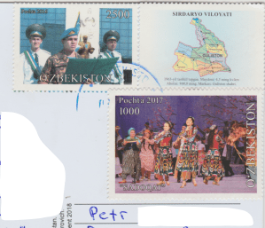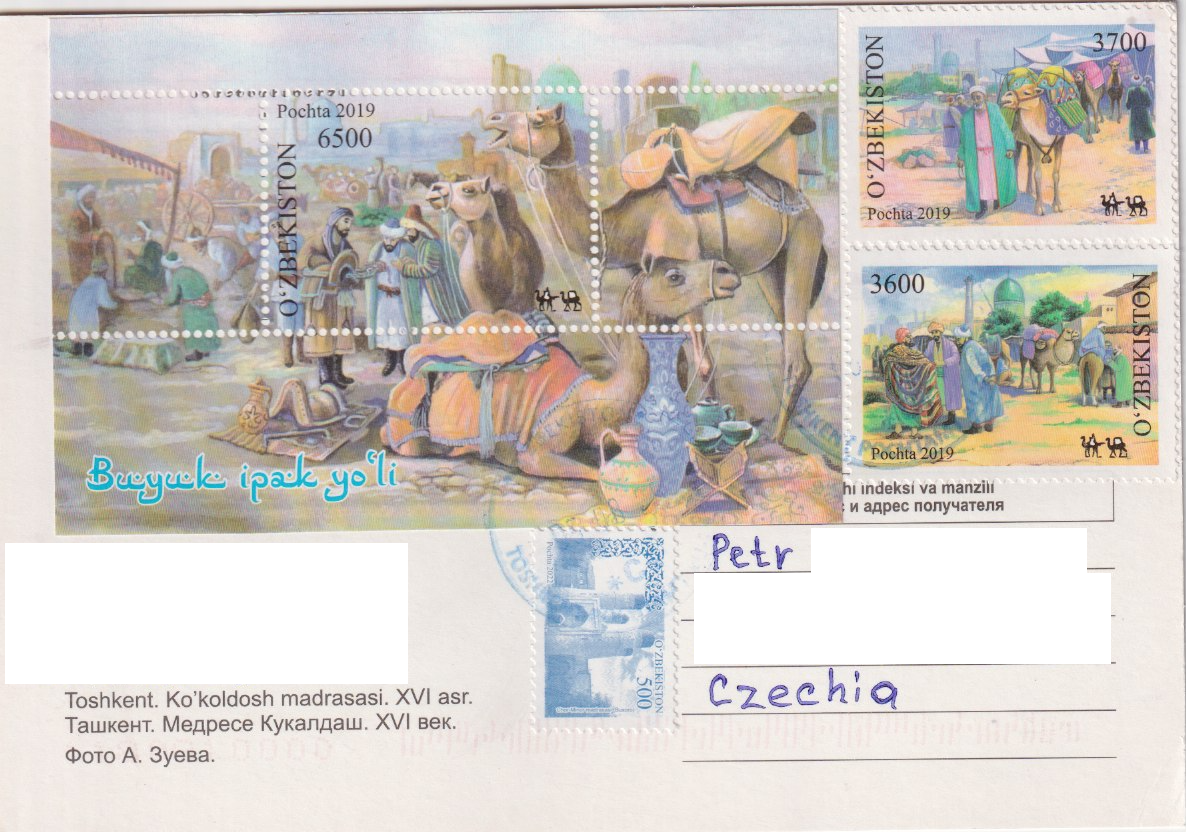 Na konci srpna 2025 jsem po dlouhých letech dostal další pohlednici z Uzbekistánu, zachycující jednu z místních ikonických kulturních památek, medresu v Taškentu. Kolega postcrosser použil skutečně překrásné známky a k nim jeden celý aršík. V úterý 2. září 2025 pak dorazila i druhá pohlednice z mého swapu.