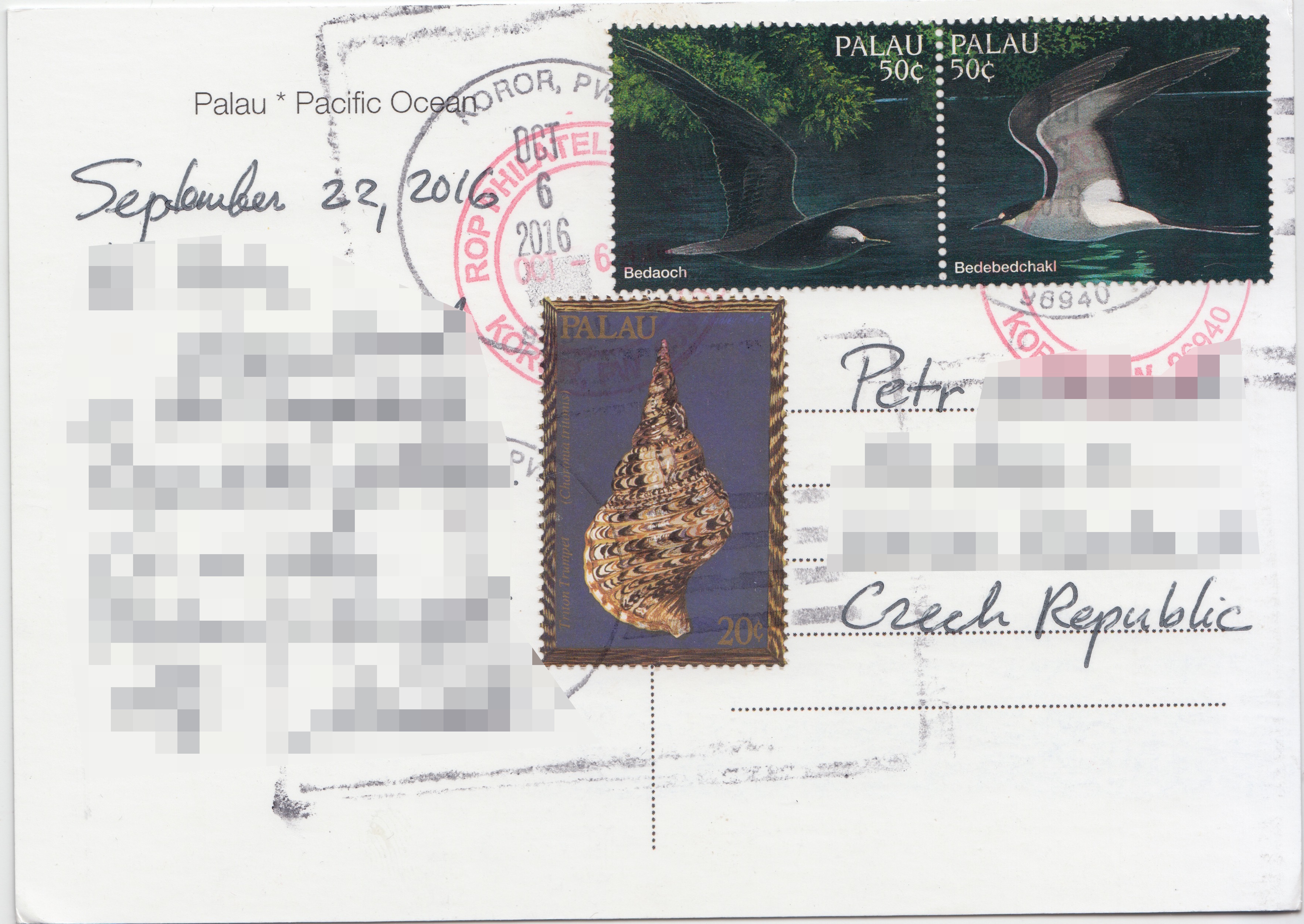 V pondělí 24. října 2016 jsem dostal své dva první pohledy z Palau. Republika Palau je malý ostrovní stát v Západním Pacificku, sestávající z celkem 250 ostrovů. Palau má necelých 18 tisíc obyvatel a existuje ve volném politickém svazku s USA, které zajišťují obranu a zahraniční politiku. Palau “objevili” Evropané kolem roku 1574 a souostroví se stalo součástí španělských držav.