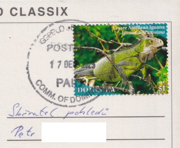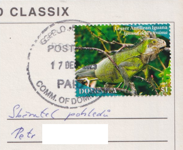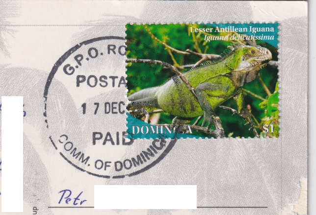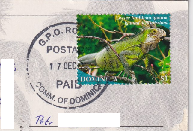 Dominica, celým názvem Commonwealth of Dominica, je ostrovní stát v Karibiku. Ostrov o celkové rozloze přibližně 750 km2 se nachází poblíž Guadeloupe a Martiniku. Má hlavní město Roseau a je obýván asi 70.000 lidmi. Dominica je jeden z nejmladších karibských ostrovů vulkanického původu a na místě jsou stále aktivní horké prameny. Největší z nich, Boiling Lake, nacházející se v národním parku Morne Trois Pitons, je druhý největší geotermální pramen na světě. Dominica je proslulá mimořádně zachovanou tropickou přírodou včetně hustých pralesů, obývaných mnoha vzácnými druhy živočichů. Papoušek Amazoňan císařský se vyskytuje ve volné přírodě pouze na ostrově Dominica a jeho zobrazení je součástí státního znaku. Kolumbova výprava objevila Dominicu pro Evropany již v roce 1493, ale první Evropané se na ostrově vylodili až v roce 1632 a byli francouzského původu. Až do roku 1660 byla Dominica oficiálně neutrální, ale v roce 1761 byla během Sedmileté války dobyta britskou armádou a ostrov se stal korunní kolonií. Nezávislost byla vyhlášena v roce 1978, kdy se ostrov stal republikou. Svoji první pohlednici z Dominiky jsem dostal v roce 2015.