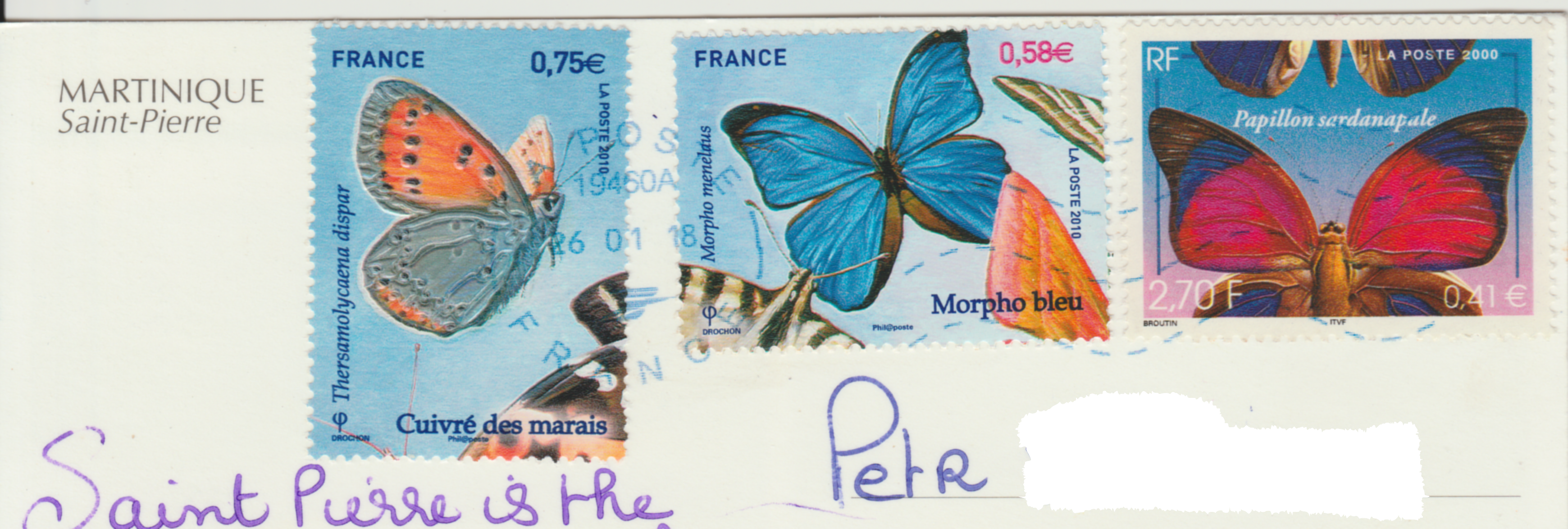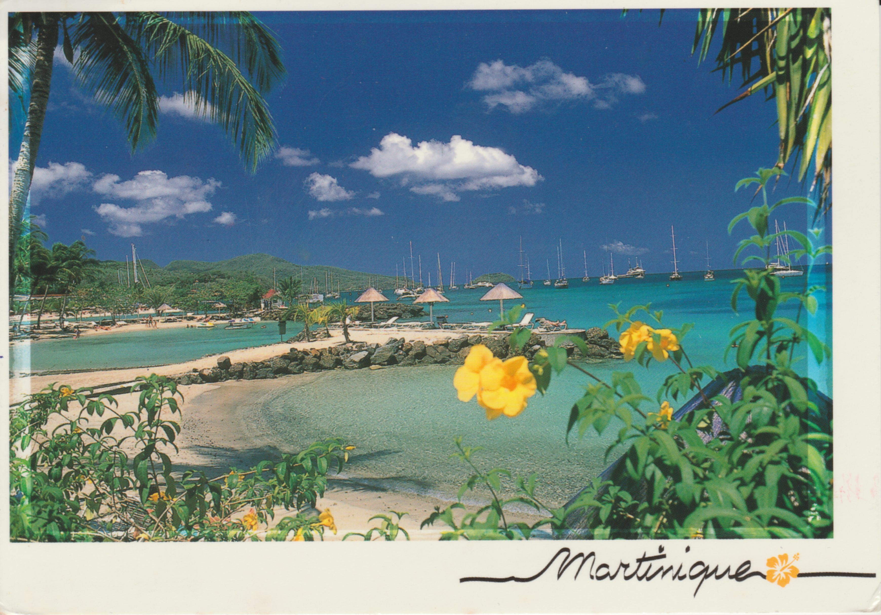 V pátek 2. února do mé poštovní schránky přibyly vůbec první tři pohledy ze slunného karibského Martiniku, tohoto zámořského departmentu Francie. Ostrov byl objeven pro Evropany již roku 1493 Kryštofem Kolumbem, ale byl zabrán až v roce 1635 francouzským guvernérem ostrova St. Kitts. Následovala jako obvykle postupná likvidace místní karibské kultury a společnosti, povstání z roku 1658 bylo krvavě potlačeno a místní obyvatelé pobiti nebo vyhnáni. Po Ediktu Nantském z roku 1685 bylo na ostrov násilně deportováno několik tisíc francouzských hugenotů, kteří zde byli drženi jako nevolníci (Engagés), pracující na plantážích. Do roku 1688 ale téměř veškerá protestantská francouzská populace uprchla na nejrůznější britská území v Karibiku, což naprosto zdecimovalo místní koloniální zřízení. Otroctví bylo na ostrovech zrušeno až v roce 1848. Během II. světové války ostrov kontrolovala vichystická vláda a Martinik se stal zásobovací základnou pro nacistické ponorky během Bitvy o Karibik, kdy bylo potopeno více než 200 spojeneckých obchodních lodí. Kolem Martiniku totiž vedla jedna z hlavních námořních tras od obří ropné rafinerie na ostrově Curaçao pod kontrolou nizozemské vlády (tehdy vůbec největší rafinerie na světě), sloužící pro zásobování Spojenců. Gaullistické síly Svobodné Francie se na ostrově vylodily a dobyly ho až 14. července 1943. V roce 1946 byl Martiniku poskytnut status regulérního francouzského departmentu. Dnes je vyhledávaným a krásným turistickým letoviskem. Na ostrově však existuje poměrně značná chudoba a obrovské sociální rozdíly, které vyvrcholily do generální stávky a bouří z roku 2009. Ekonomika ostrova je zcela závislá na masové turistice a nesystémově také na obrovské dovozní dani na veškeré zboží, která dosahuje výše až 30% a tvoří téměř polovinu místního rozpočtu.
