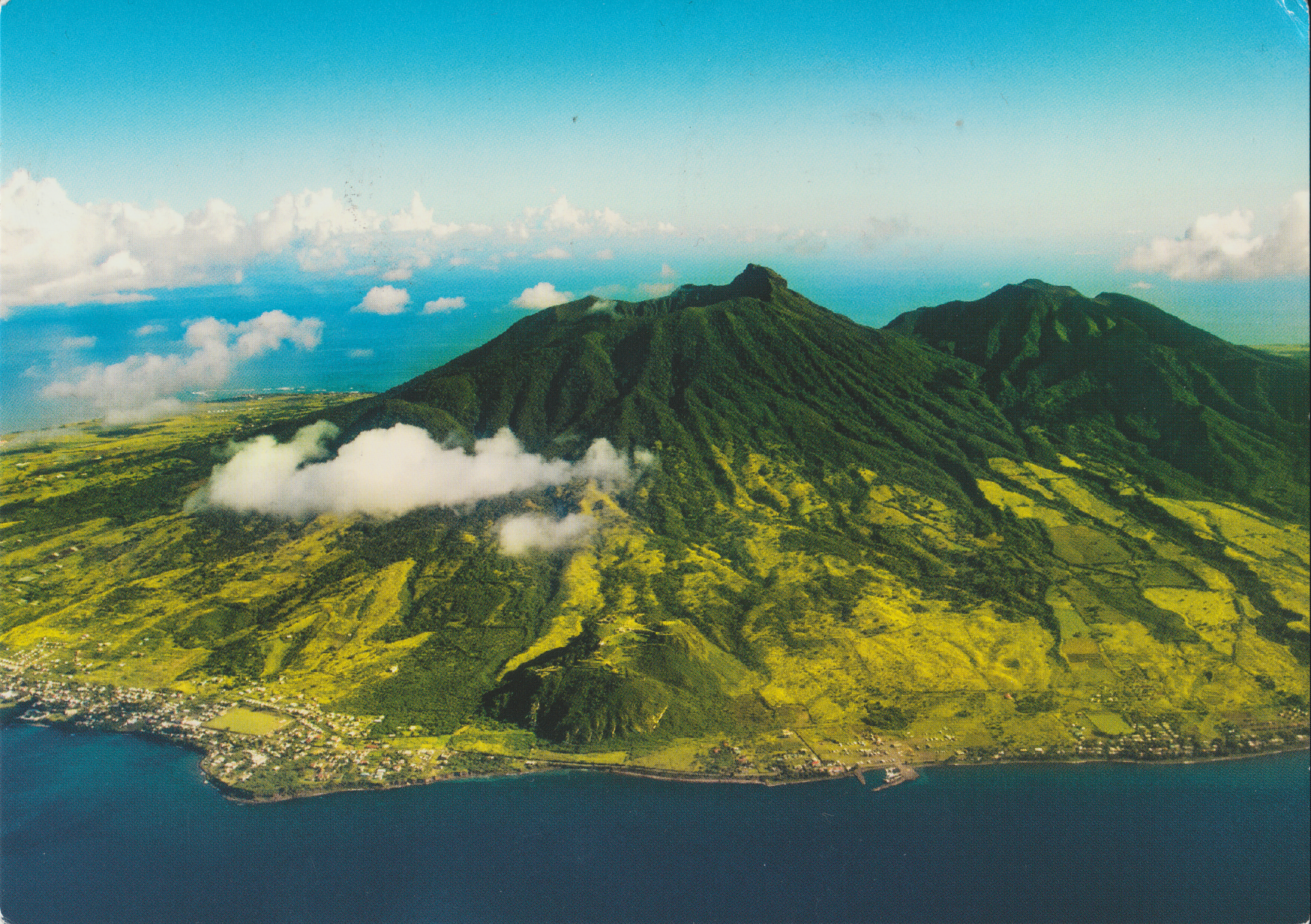 V pondělí 23. dubna 2018 do mé poštovní schránky dorazil další krásný raritní pohled ostrova Nevis, zachycující tentokrát Mount Liamuiga, vulkanický kužel, zabírající celý střed ostrova.