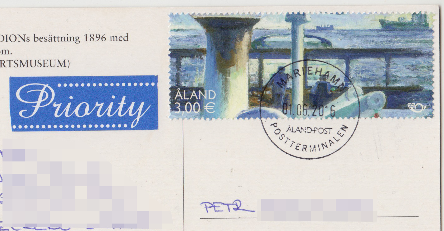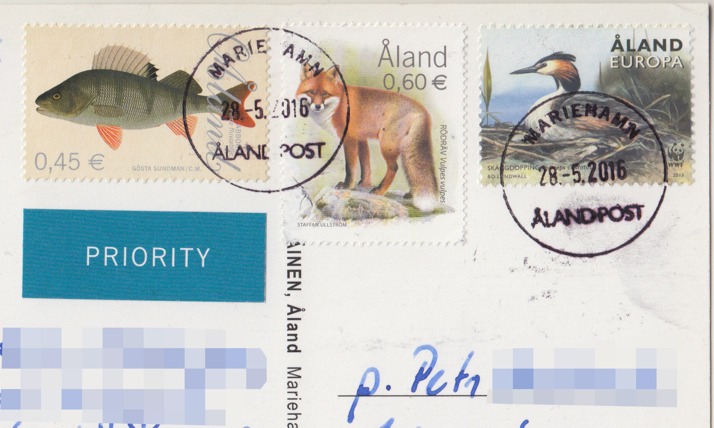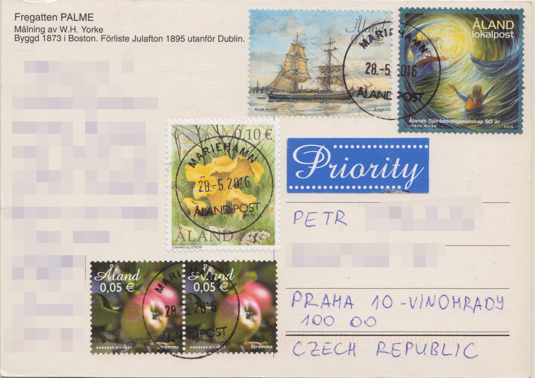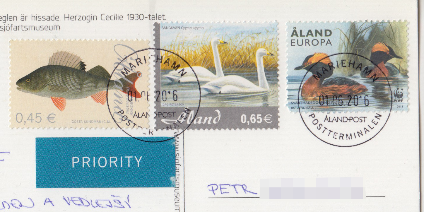 Na konci května 2017 jsem měl to štěstí a znovu strávil týden na Alandských ostrovech. Ještě větší štěstí mě potkalo v té souvislosti, že týden po mém odjezdu se na místě konal postcrosserský sraz a vděčím za mnohé skvělé finské postcrosserce Nině, která mi poslala tyto krásné pohledy, na kterých jsou tedy příležitostná razítka, která vznikla právě pro tento sraz. Pokud by to bylo jen trochu možné, na Alandy bych se okamžitě odstěhoval.