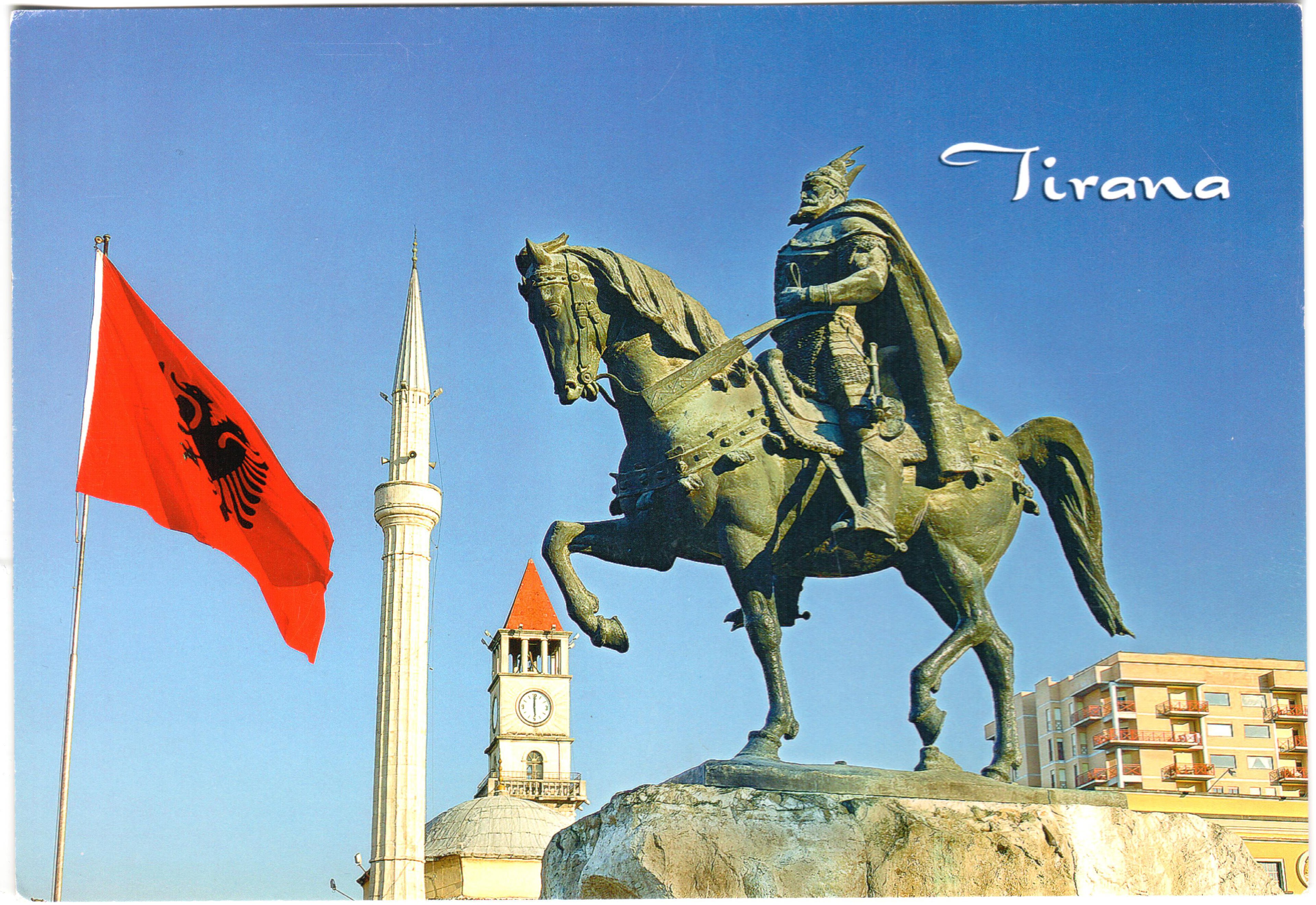 Moje druhá a třetí pohlednice z Albánie dorazily již vcelku nečekaně 9. dubna 2015 a měl jsem z nich velkou radost. Nalezneme na nich město Berat, konkrétněji jeho čtvrť Mangalem, dnes zařazenou na seznam Světového dědictví UNESCO. Na druhé pohlednici je pomník hrdinovi “národně-osvobozeneckého boje” Skandenbergovi. George Castrioti (1405 – 1468) byl významný šlechtic, který dezertoval z tureckých řad po bitvě u Niše roku 1423 a dočasně vytvořil na území dnešní Albánie rozsáhlou državu, kterou následujících 25 let velmi dovedně bránil proti osmanskému vlivu s pomocí Neapolského království a papežského státu.