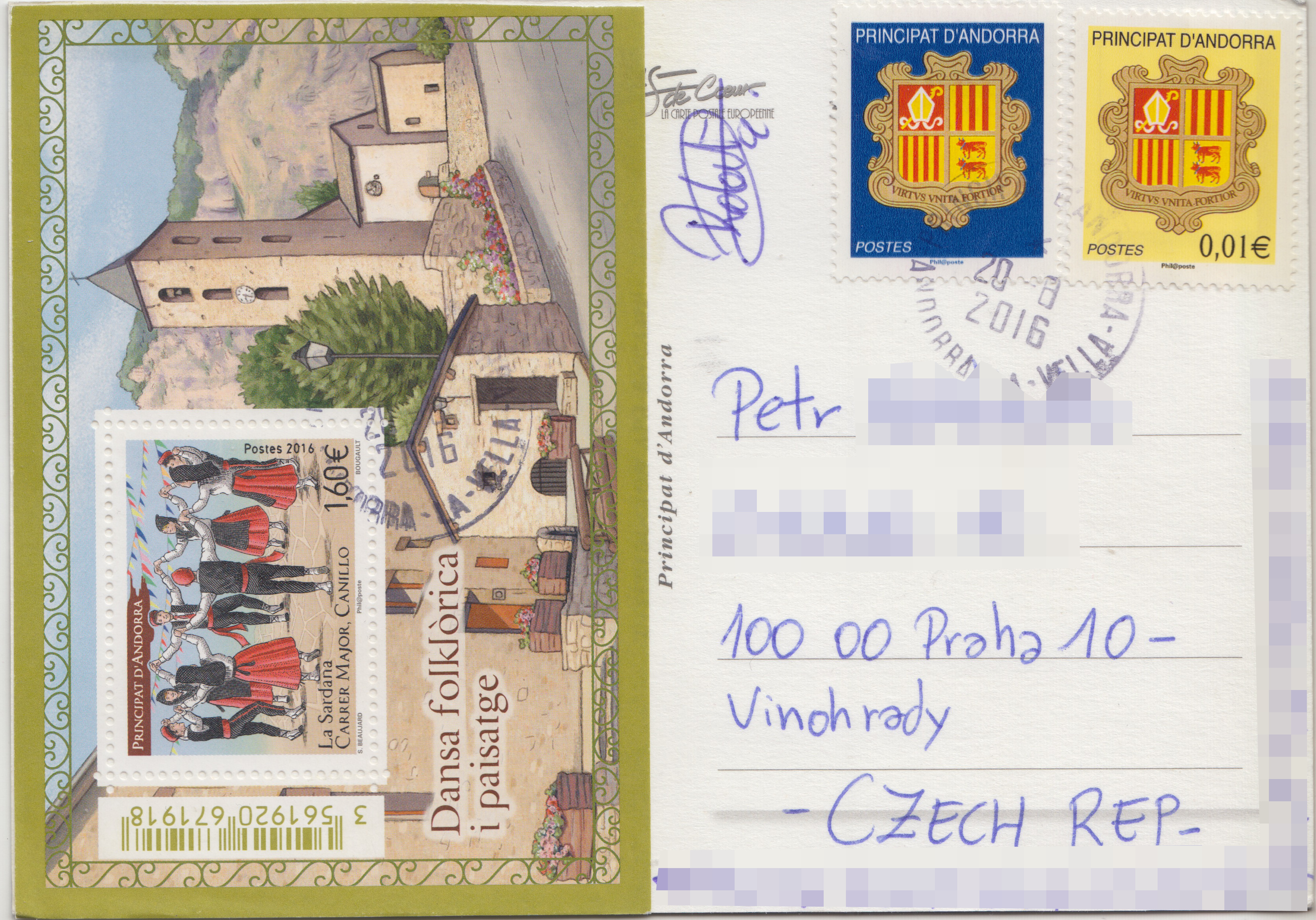V srpnu 2016 do mé poštovní schránky od Roberta dorazila moje druhá pohlednice z Andorry, francouzského poštovního systému. Zobrazuje místní unikátní románské sakrální památky.
