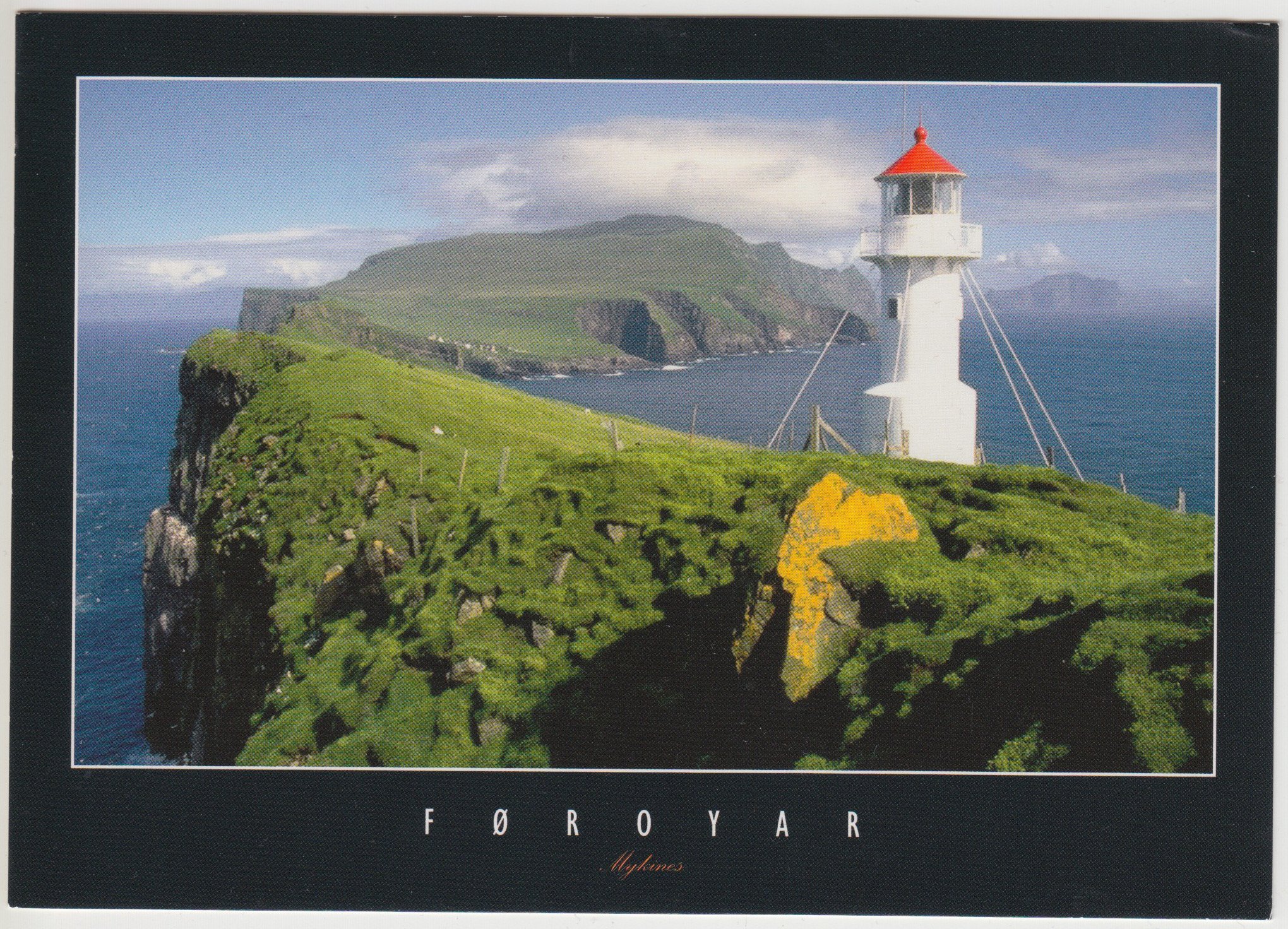 Téměř na týden o jeden rok později po mých prvních pohlednicích je následovala krásná pohlednice majáku z ostrova Mykines od Eleny ze Sandvíku.