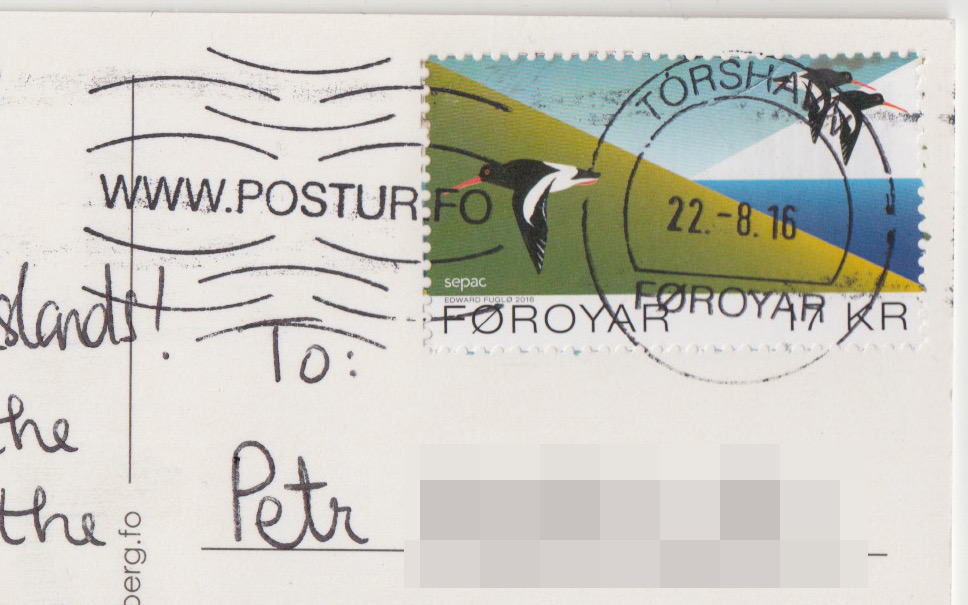 V pátek 26. srpna 2016 do mé poštovní schránky dorazil krásný pohled od Áfriky, která Faery navštívila v době mé návštěvy San Marina. Pohlednice zachycuje pohled na přístav Leirvík na ostrově Eysturoy.