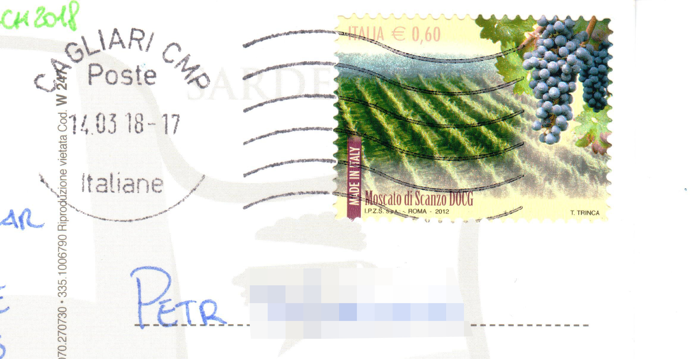 Na konci března jsem dostal tyto dva krásné pohledy z italské Sardinie.