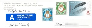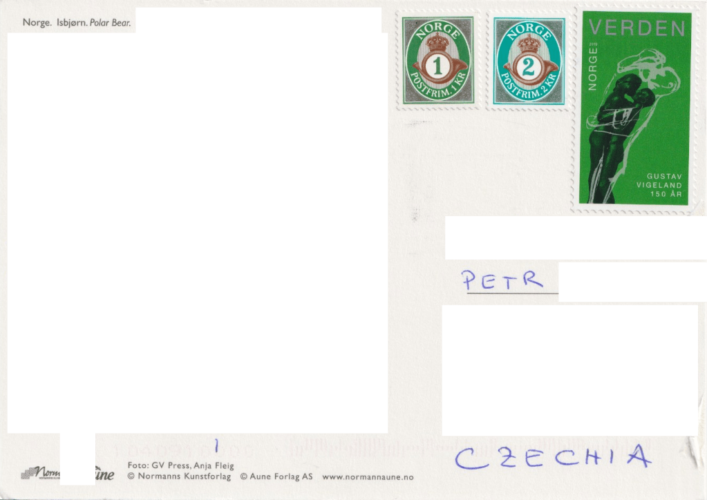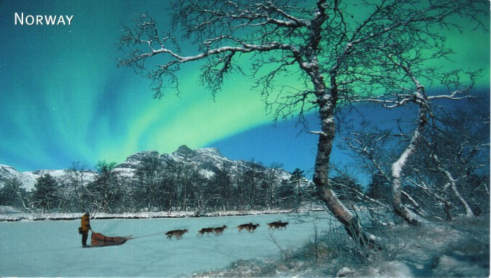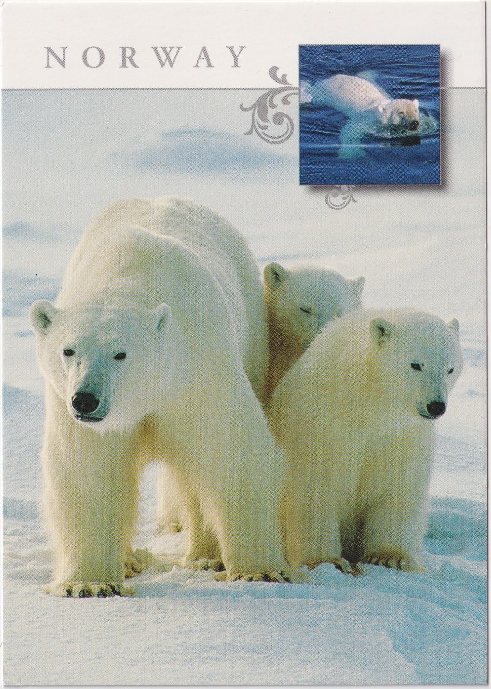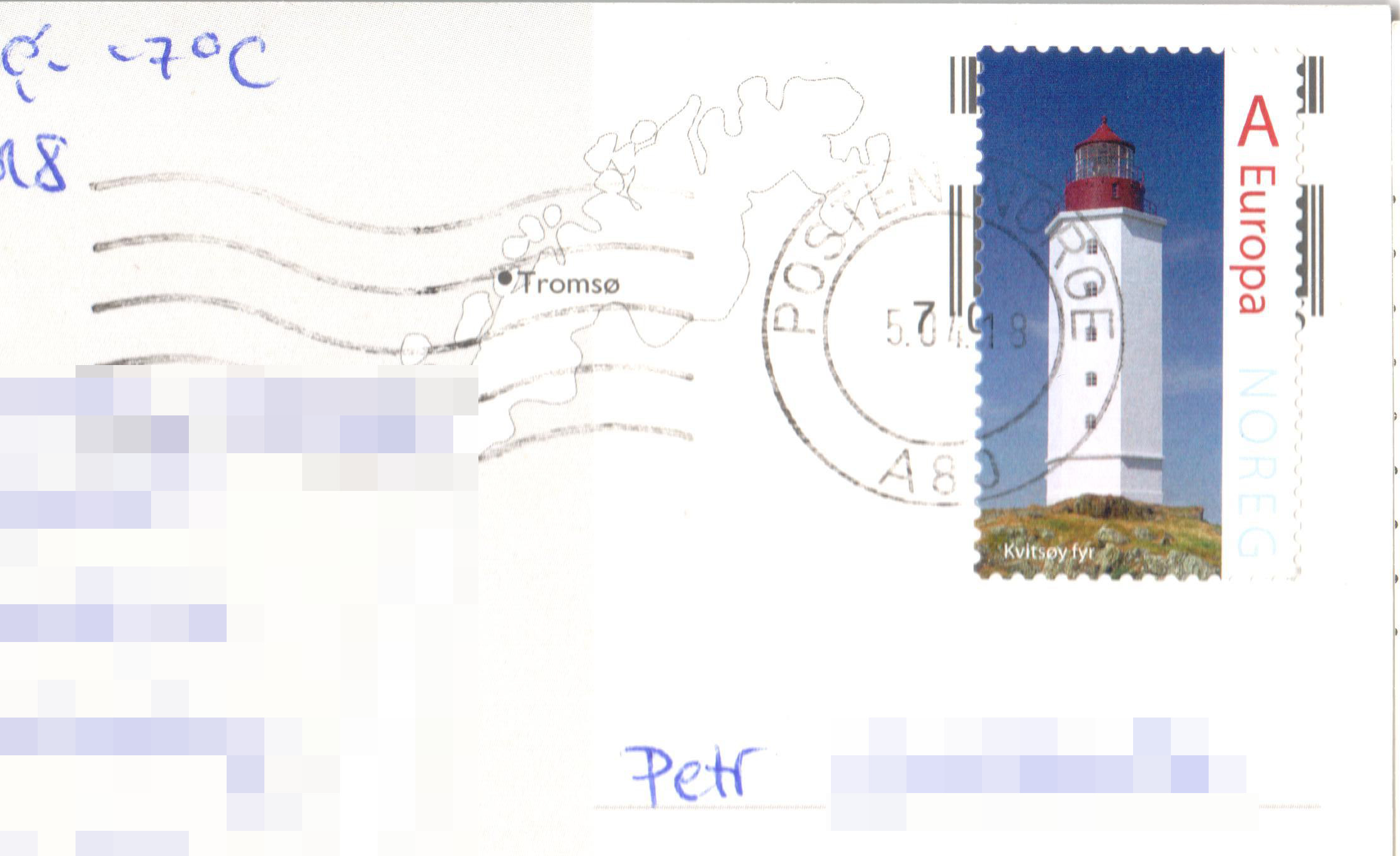 V pátek 5. září 2025 jsem do své poštovní schránky dostal tuto krásnou pohlednici polární záře nad Nordkapem, a to od své drahé. Přišla také pohlednice s “rodinkou” ledních medvědů. Ti se v Norsku vyskytují v oblasti Špicberk (Svalbard), kde tvoří takzvanou BS-subpopulaci, nazvanou podle Barentsova moře. Tato populaci čítá minimálně 300 jedinců, kteří se vyskytují po celé ploše souostroví a často migrují tam a zpět směrem na Zemi Františka Josefa, velké souostroví, které se nachází na území Ruska – tamější populace přesahuje 2500 kusů.Ve středu 12. července 2023 jsem do své poštovní schránky dostal od Svenjy tuto krásnou pohlednici z norských Lofot.V roce 2019 jsem do své poštovní schránky dostal i tuto krásnou žánrovou pohlednici z Norska.V úterý 7. srpna 2018 jsem dostal krásnou pohlednici z Norska, zobrazující Loď z Tuny, neboli Tuneskipet, umístěnou v muzeu vikingských lodí Vikingskipshuset na poloostrově Bygdøy v Oslu. Loď byla objevena v roce 1867 a sloužila jsko součást pohřební výbavy pro vikingského aristokrata. Loď byla více než 22 metrů dlouhá a měla 11 nebo 12 párů vesel.