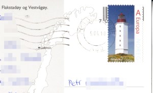 Druhý týden v dubnu 2018 jsem dostal od postcrosserek Gerlindy a Svenjy dvě krásné pohlednice, zobrazující Lofoty, souostroví v norské oblasti Nordland, proslulé krásnou a zhusta ještě nedotčenou přírodou. Lofoty se skládají ze šesti hlavních ostrovů a mnoha menších a žije na nich přibližně 24 tisíc lidí. Biodiverzita Lofot je úžasná a souostroví je největší kolonií mořských ptáků v Evropě, vyskytují se zde velké populace orlů mořských nebo papuchalků. Lofoty jsou také proslulé vynikajícími sušenými rybami, které se vyvážejí do celého světa.
