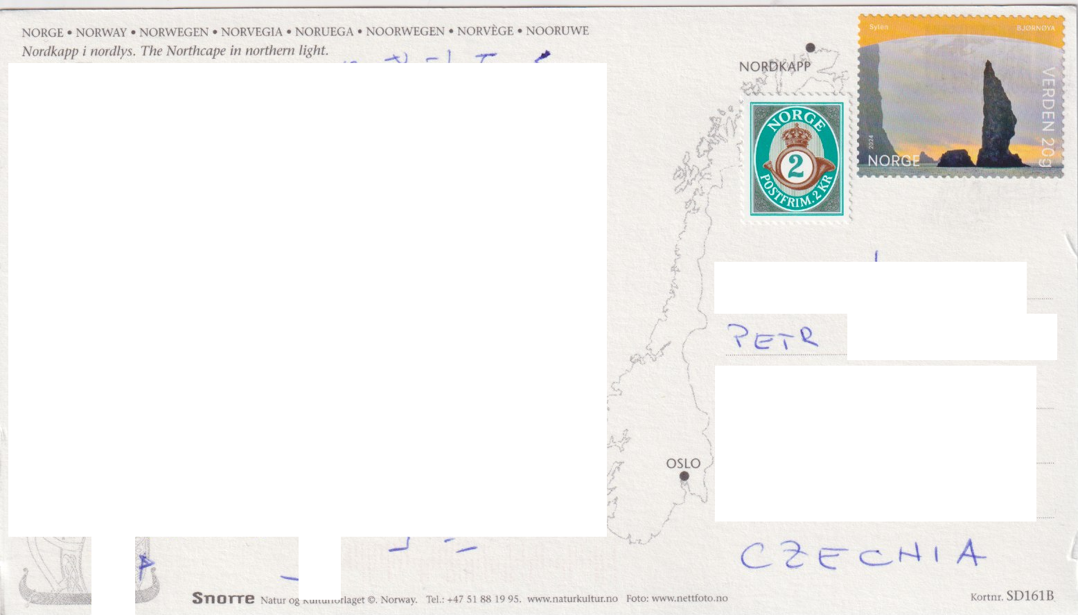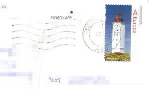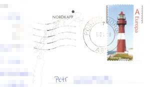 O mysu Nordkapp, který se nachází na norském ostrově Magerøya v provincii Finnmark, se traduje, že se jedná o nejsevernější výspu evropského kontinentu. Na místě končí jedna z páteřních evropských komunikací, silnice E69 a je zde také nejseverněji položená evropská pošta. Nordkapp je zakončen překrásným 307 metrů vysokým útesem. Nejsevernějším bodem Evropy je ve skutečnosti malý bezejmenný mys u sousedícího přístavu Knivskjellodden, který je vysunut do Barentsova moře o 1457 metrů dále. I tak je ale Nordkapp úžasné místo. Tyto dvě pohlednice jsem dostal v pátek 15. července 2016 a byly odeslány přímo z Nordkappu.