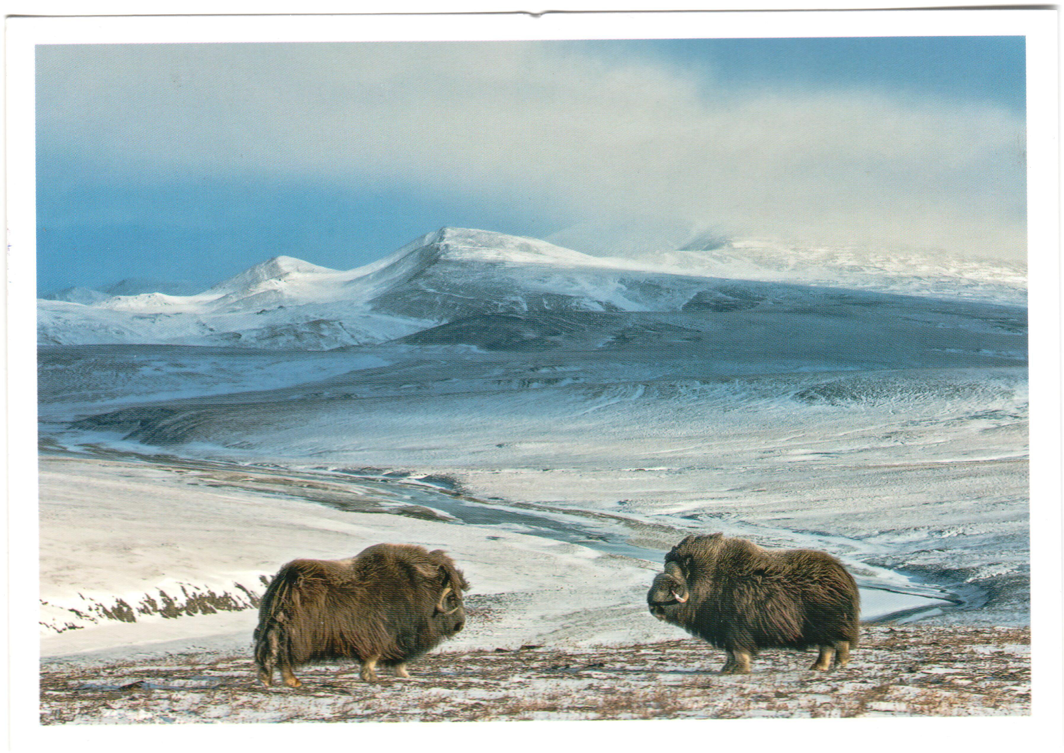 Na konci srpna 2016 jsem dostal krásný pohled za swap ze San Marina od Iriny. Zobrazuje dva býky pižmoňů severních (muskox) z Wrangelova ostrova. Ten se nachází v Severním ledovém moři, přesněji mezi Čukotským mořem a Východosibiřským mořem. Ostrov je široký asi 125 kilometrů a je na něm vyhlášená federální přírodní rezervace. Od roku 1976 má nejpřísnější klasifikaci ochrany a ja ně nem vyloučena jakákoli lidská aktivita. V létě na ostrově působí jen 12 vědců, kteří monitorují místní faunu a flóru. Wrangelův ostrov je unikátní tím, že zde doložitelně přežili mamuti srstnatí až do doby přibližně 2000 let př. n. l. Ostrov má také velkou populaci ledních medvědů, kteří zde zimují a vyvádějí mláďata. V okolních vodách se vyskytuje mnoho kytovců. Biodiverzita Wrangelova ostrova je úžasná.