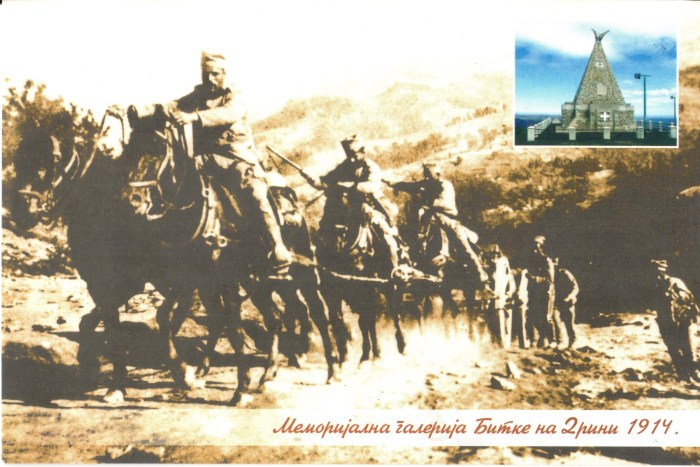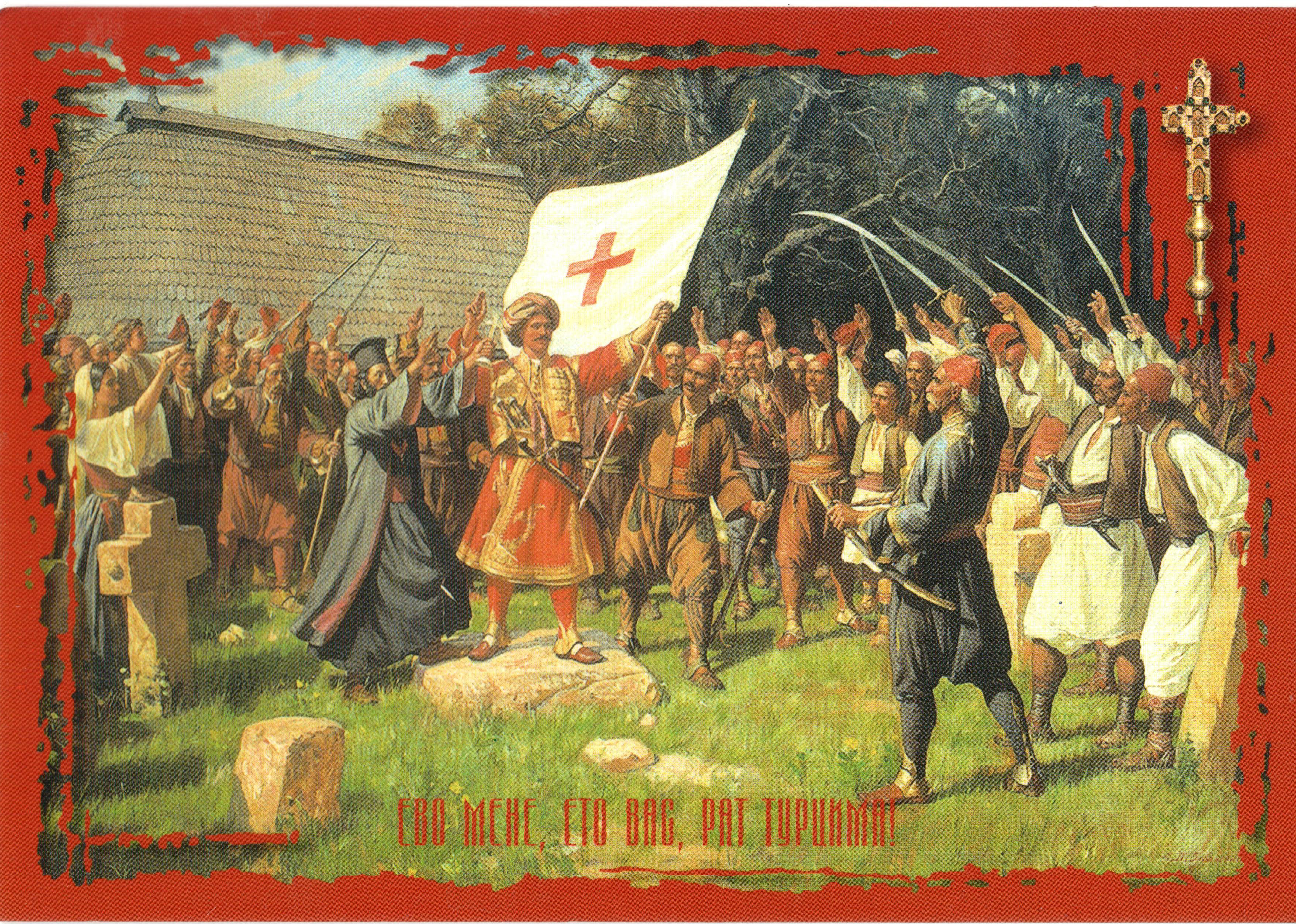 Vojenská historie Srbska se nese v silných tragických a heroických podtónech již od raného středověku. Země, položená na trojnásobném rozhraní civilizací (západoevropská, pravoslavná, islámská), zažila nespočet válek a konfliktů. Podle typologie profesora Hrocha je srbské národní hnutí z 19. století takzvaného povstaleckého typu, v němž prim nehraje učený zájem vzdělanců o dějiny vlastní kultury, ale ozbrojený boj za nezávislost. Zejména Balkánské války a I. světová válka znamenaly pro Srbsko nepředstavitelnou devastaci a ztráty na životech. Obraz Ferdinanda Drabka, který jsem jako krásnou pohlednici dostal na konci srpna 2016 od Branislava, se jmenuje jasně: “Medaile za hrdinství” (Medalja za hrabrost) a zobrazuje veterána I. světové války. Branislav poznamenal: “Je výmluvné, že se v naší zemi lidový kroj kryje se starou uniformou.”