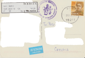 Ve čtvrtek 1. února 2018 jsem od Marije dostal krásný pohled se slavnou freskou archanděla Gabriela ze srbského kláštera Mileševa. Freska, zvaná také Бели анђео (bílý anděl), vznikla ve 13. století.