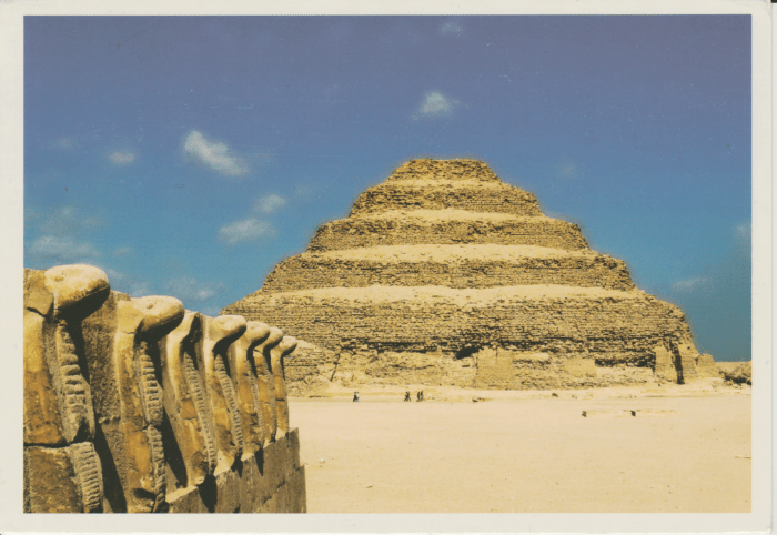 Ve čtvrtek 26. dubna 2018 jsem do své poštovní schránky dostal od bráchy pohled z jeho nedávné návštěvy Egypta – zachycuje známou Džóserovu pyramidu.