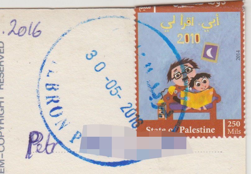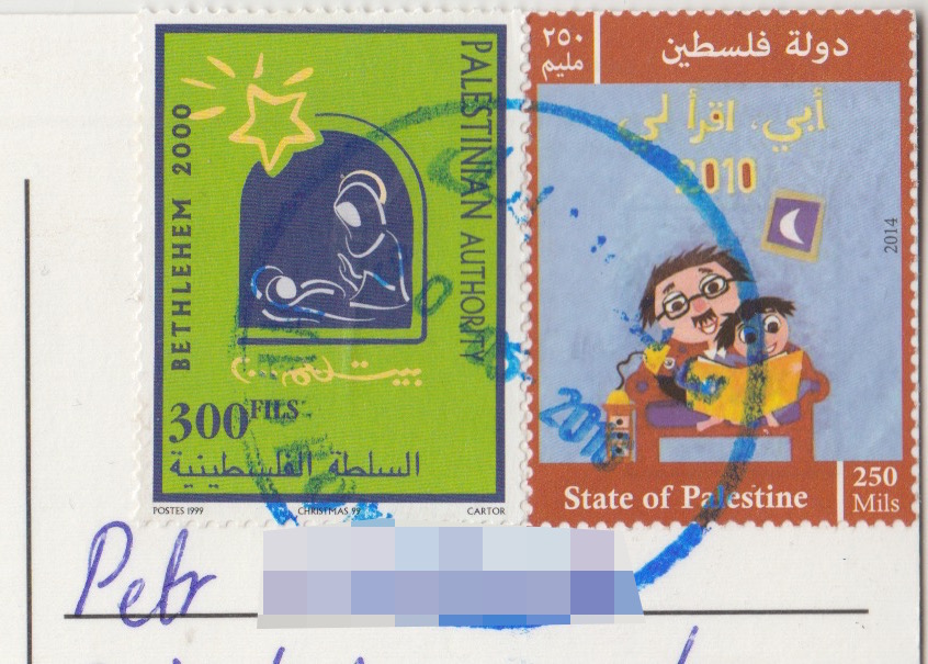 Na konci června 2016 do mé poštovní schránky dorazila čtveřice krásných pohledů znovu z Hebronu, výsledek mého swapu z Alandských ostrovů. Zajímavé je povšimnout si dvojího značení poštovních známek – jednak “Palestinian Authority” a také “State of Palestine.” To odráží nedávný historický vývoj. V roce 2012 schválilo totiž Valné shromáždění OSN Rezoluci 67/19, která přiznává Palestině status “nečlenského státu – pozorovatele”, což znamená de facto uznání státnosti. Do konce roku 2015 uznalo Palestinu celkem 136 dalších členských států OSN. Palestina není členskou zemí Světové poštovní unie (UPU), ale od roku 1999 je pozorovatelským státem a od roku 2008 izraelské úřady souhlasily, že veškerá palestinská pošta bude routována přes Jordánsko, což dosud funguje. Na prvním z pohledů je Skalní dóm v Jeruzalémě na Chrámové hoře, posvátné místo islámu, součást svatyně, postavené roku 691 pod názvem Qubbat al-Sakhrah.