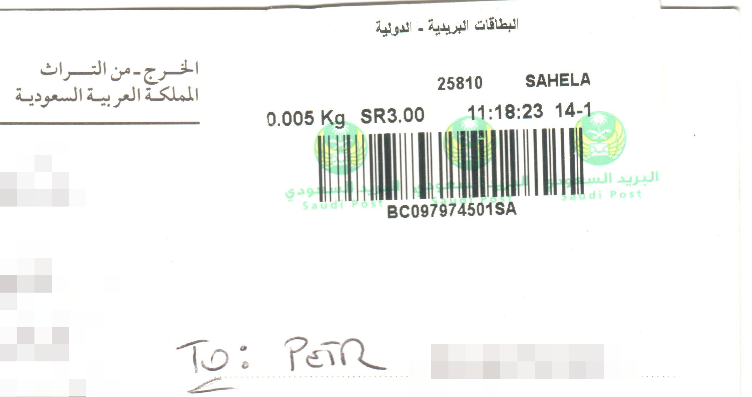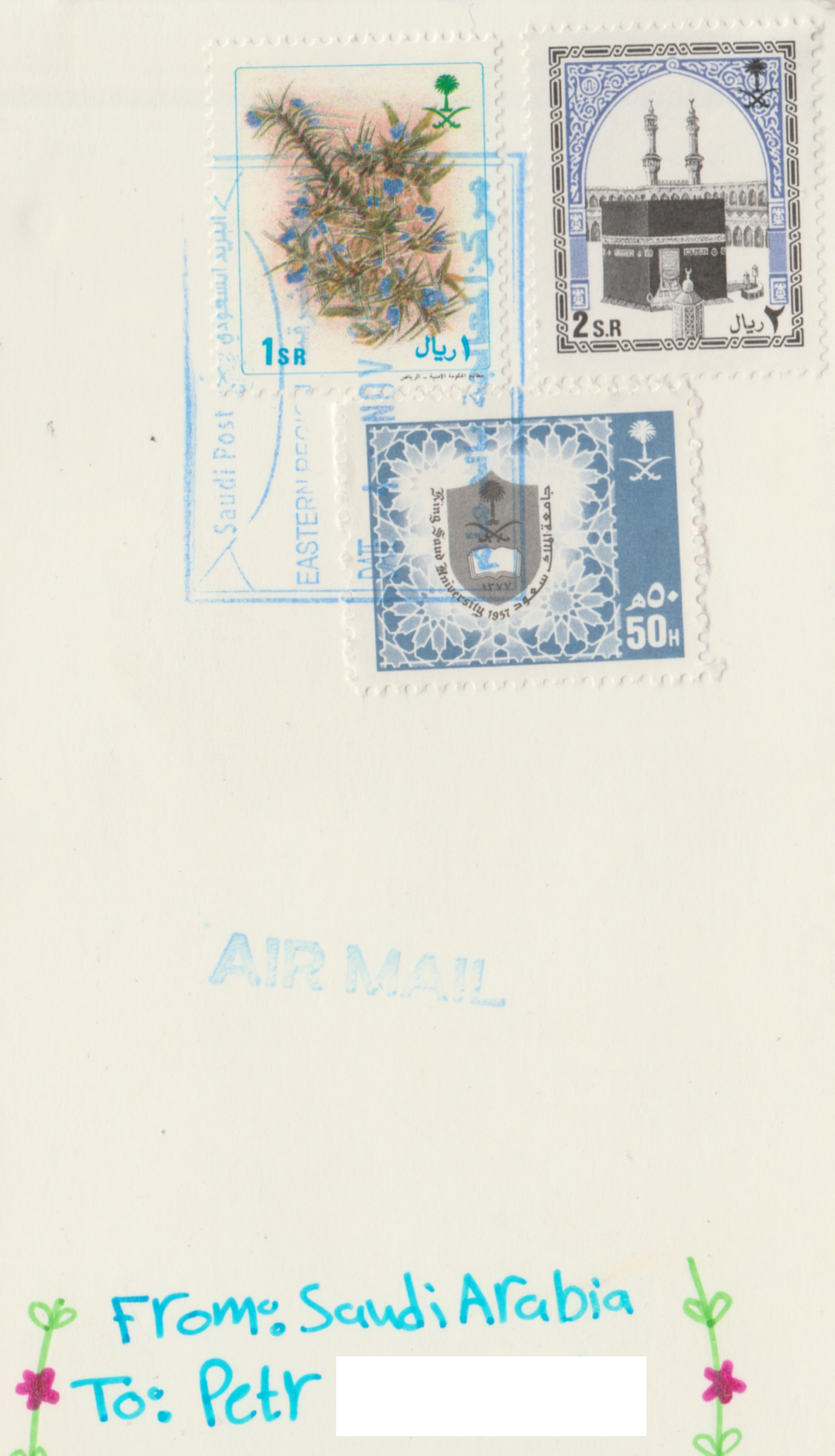 Ve středu 23. ledna 2019 jsem do své poštovní schránky dostal tuto pohlednici s ženou v tradičním saúdskoarabském nikábu.