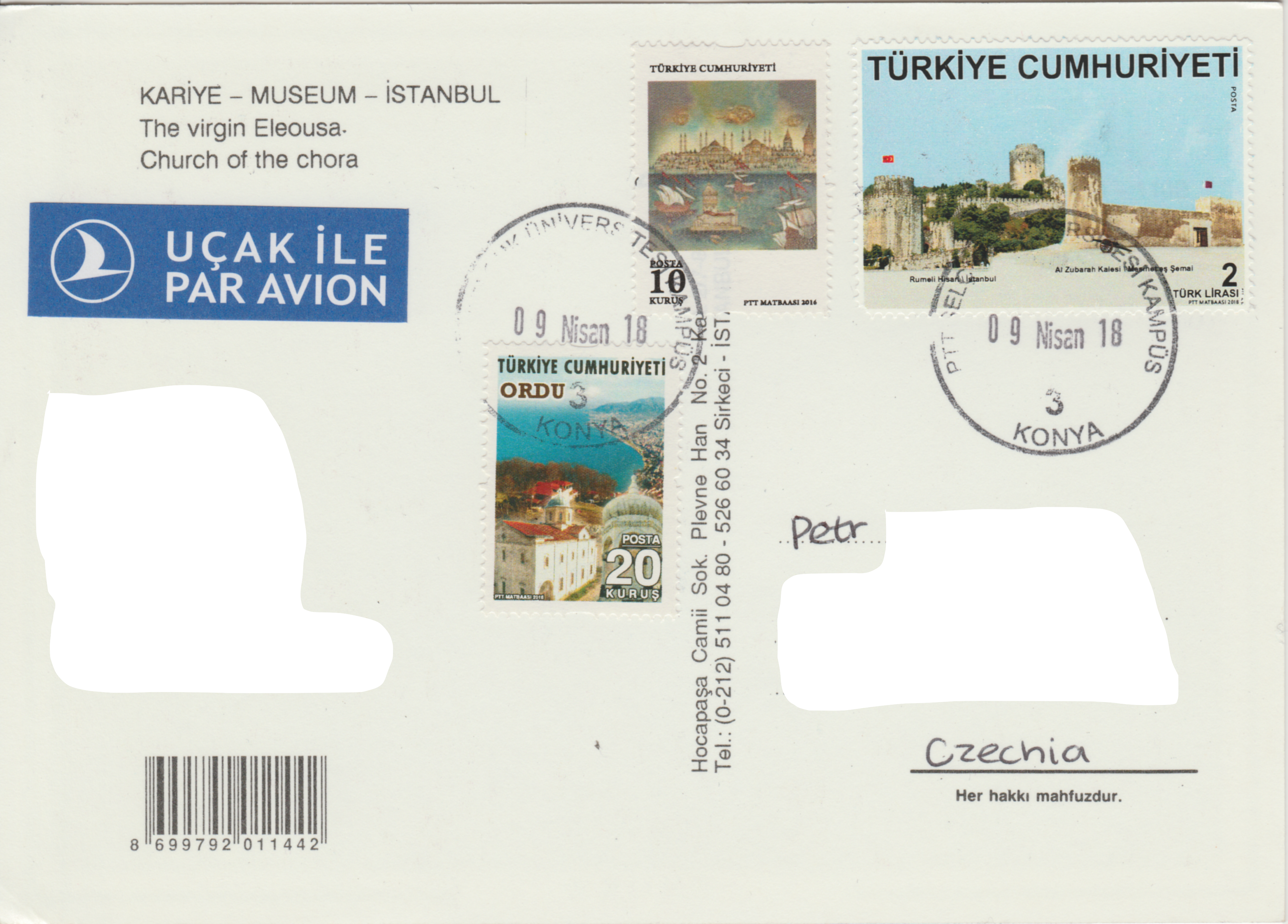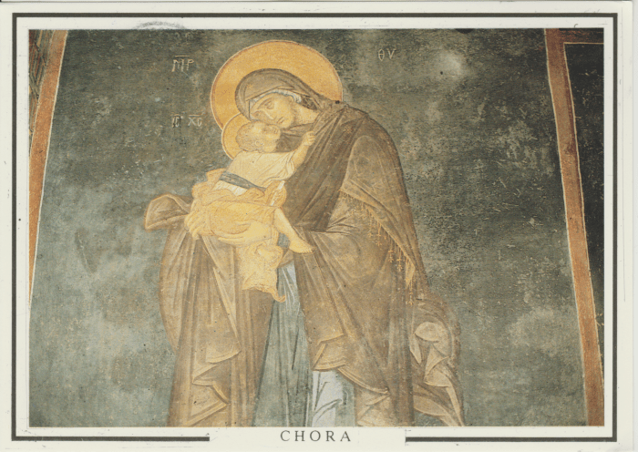 V pátek 13. dubna 2018 jsem do své poštovní schránky dostal tuto pohlednici z Turecka, zachycující byzantskou fresku z kostela sv. Spasitele, nacházejícího se v istanbulské čtvrti Edirnekapı. Kostel byl původně přestavěn na mešitu, ale v roce 1948 byl zrekonstruován jako Muzeum Chora. Chrám byl postaven ve 4. století n. l. jako Chrám sv. Spasitele za hradbami (hē Ekklēsia tou Hagiou Sōtēros en tēi Chōrai), neboť se tehdy nacházel mimo městský obvod. V kostele se dochovalo mnoho unikátní dobové mozaikové výzdoby a fresek, většinou nesoucí klasické biblické a christologické motivy.