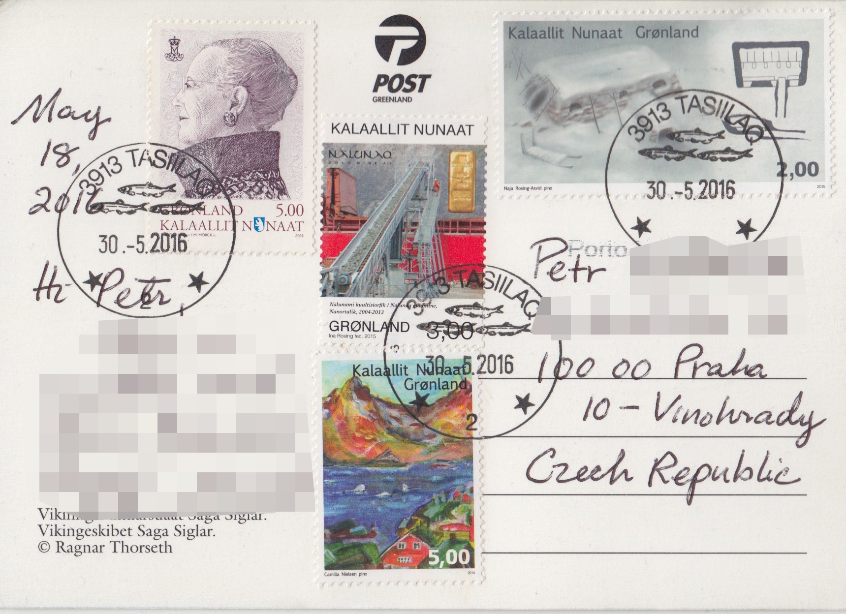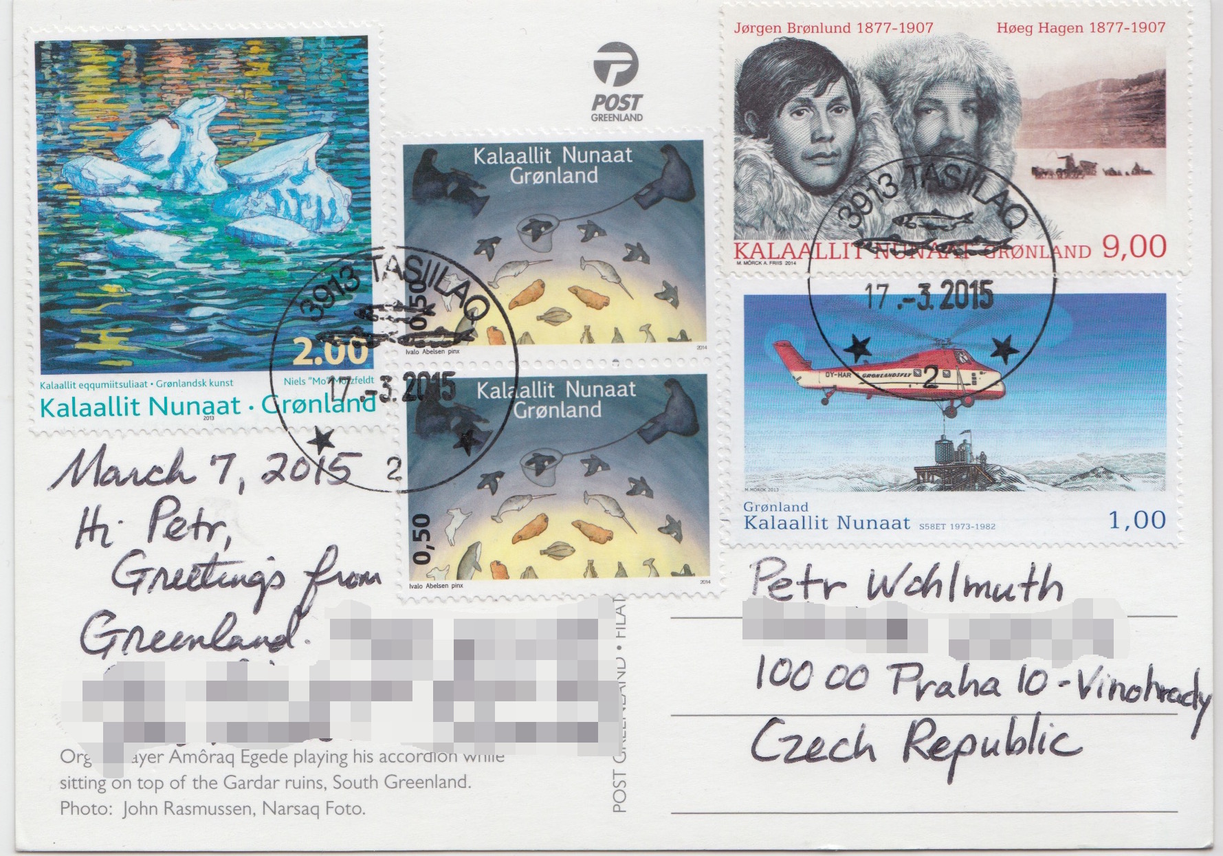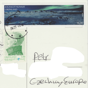 V srpnu 2019 jsem do své poštovní schránky dostal tento krásný žánrový pohled z Grónska od jednoho českého cestovatele.