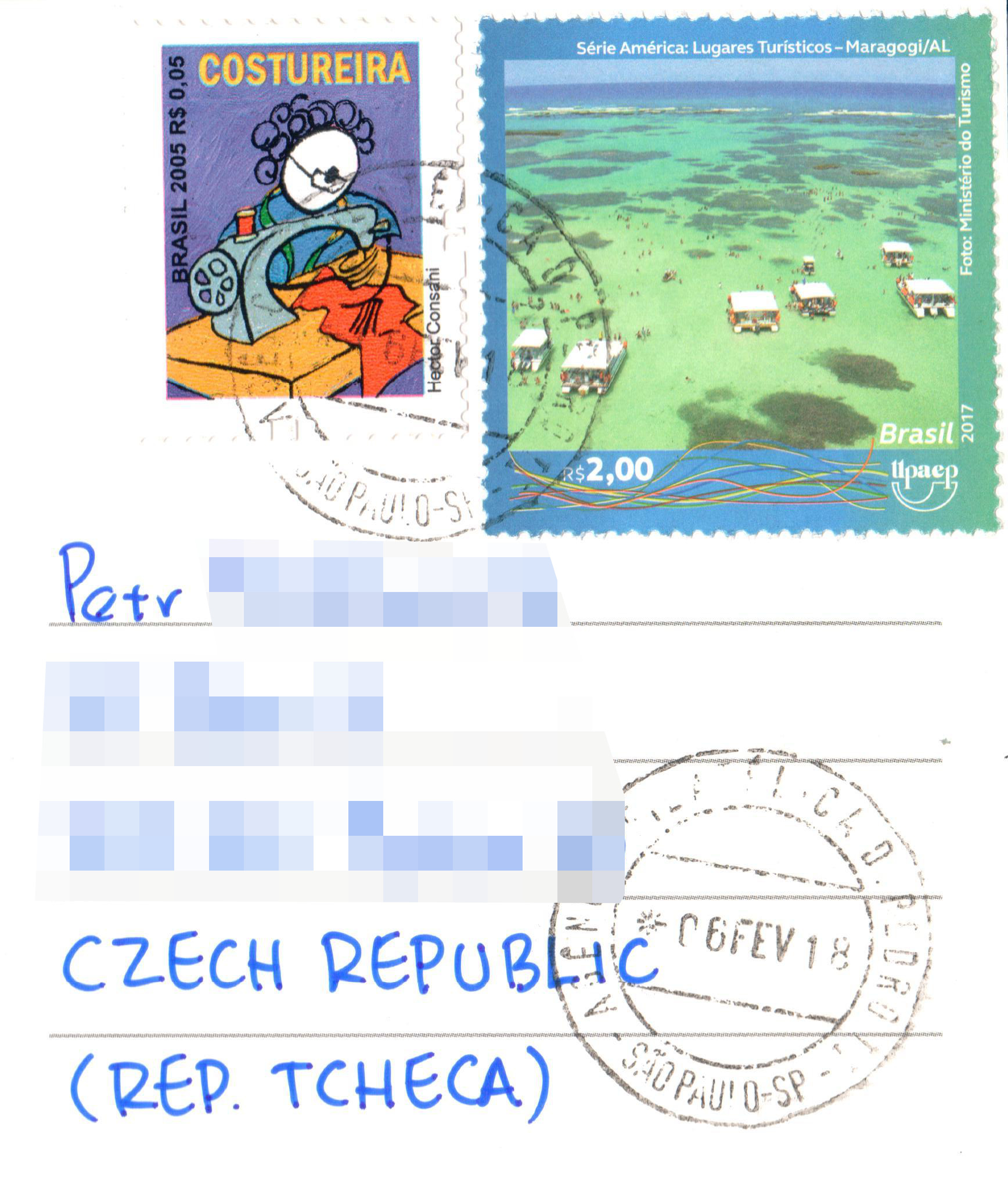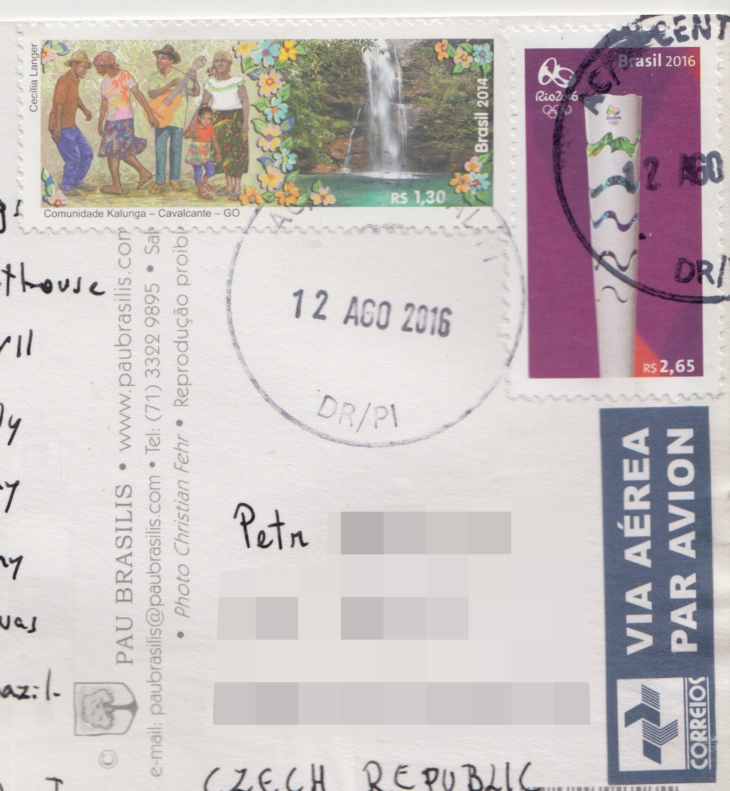 V úterý 24. dubna 2018 jsem do své poštovní schránky dostal od cestovatelky Péťy tento hezký pohled z její návštěvy Ria.