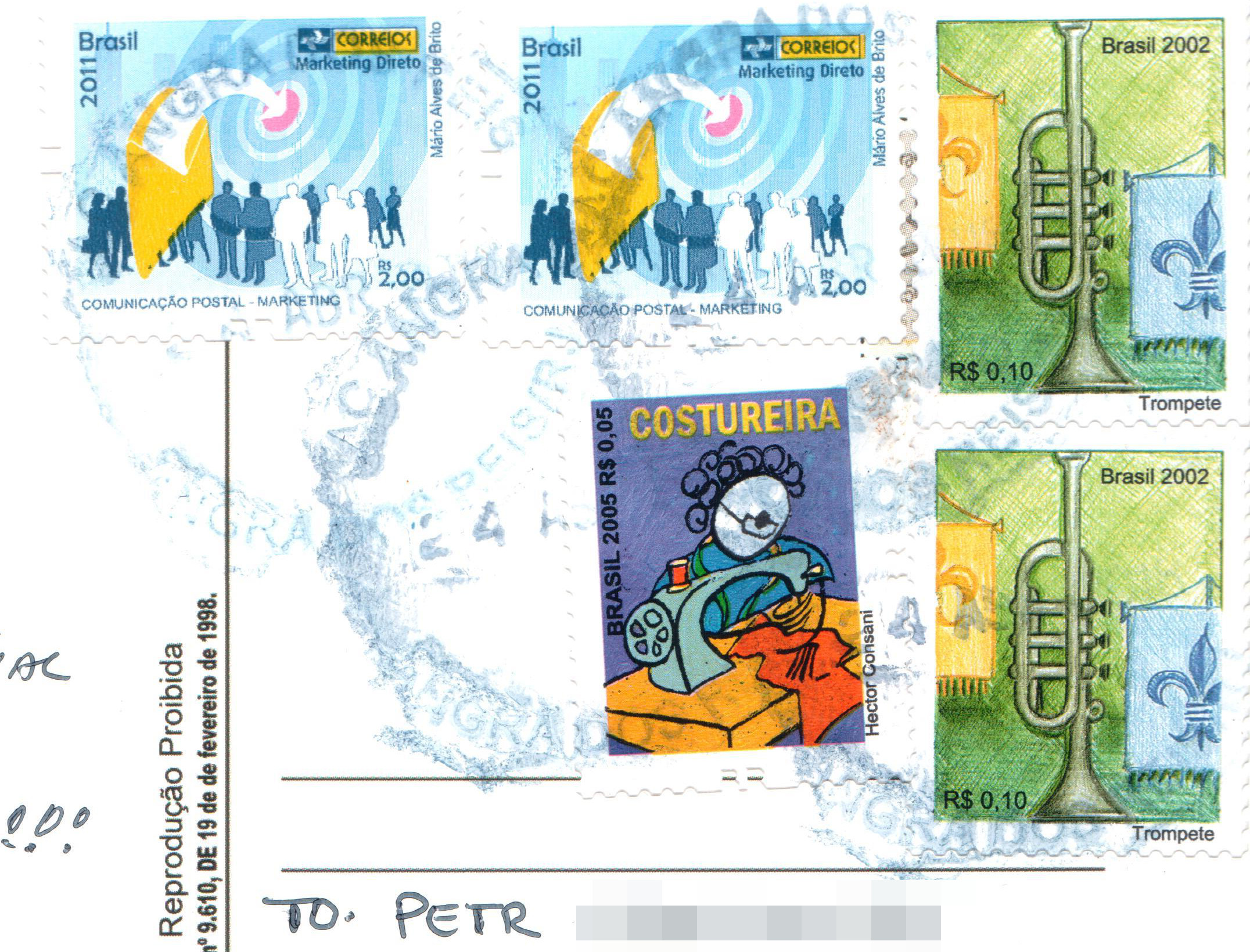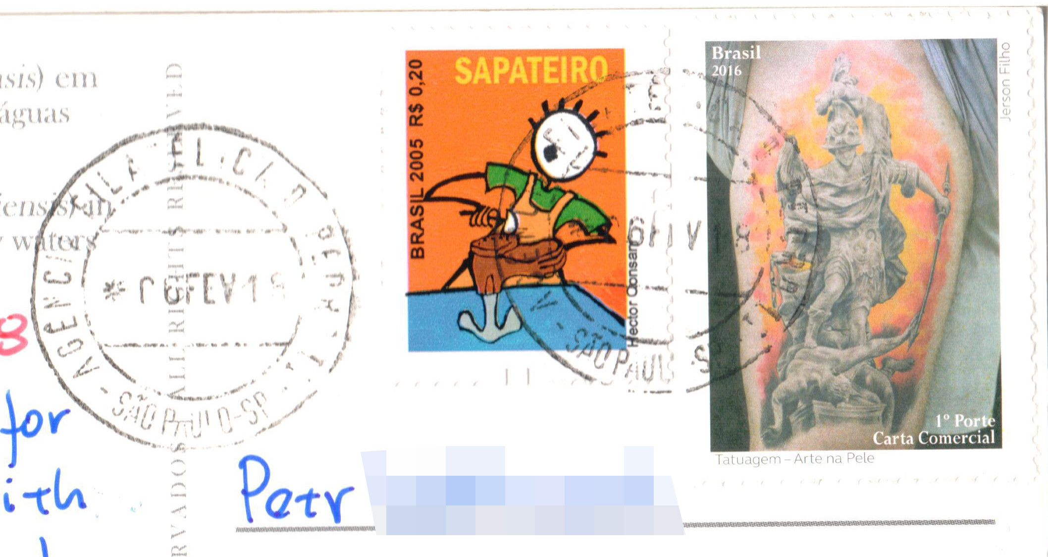 Další pohled do mé sbírky z Brazílie přibyl 15. srpna 2023, kdy dorazil od mé drahé, které navštívila Rio de Janeiro. Pohlednici posílala z hlavní pošty v centru města: poštovní úředníci byli nadšeni, že ještě někdo pohlednice posílá a stěžovali si, že se z pohledů stává pomalu mizející žánr…