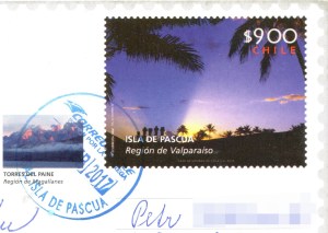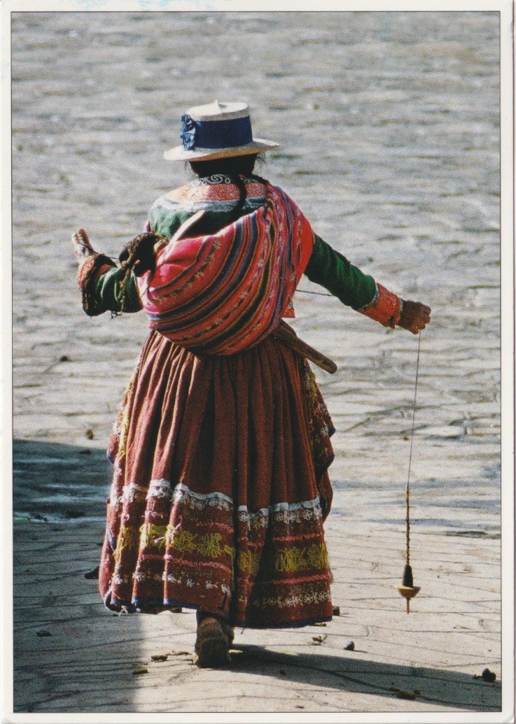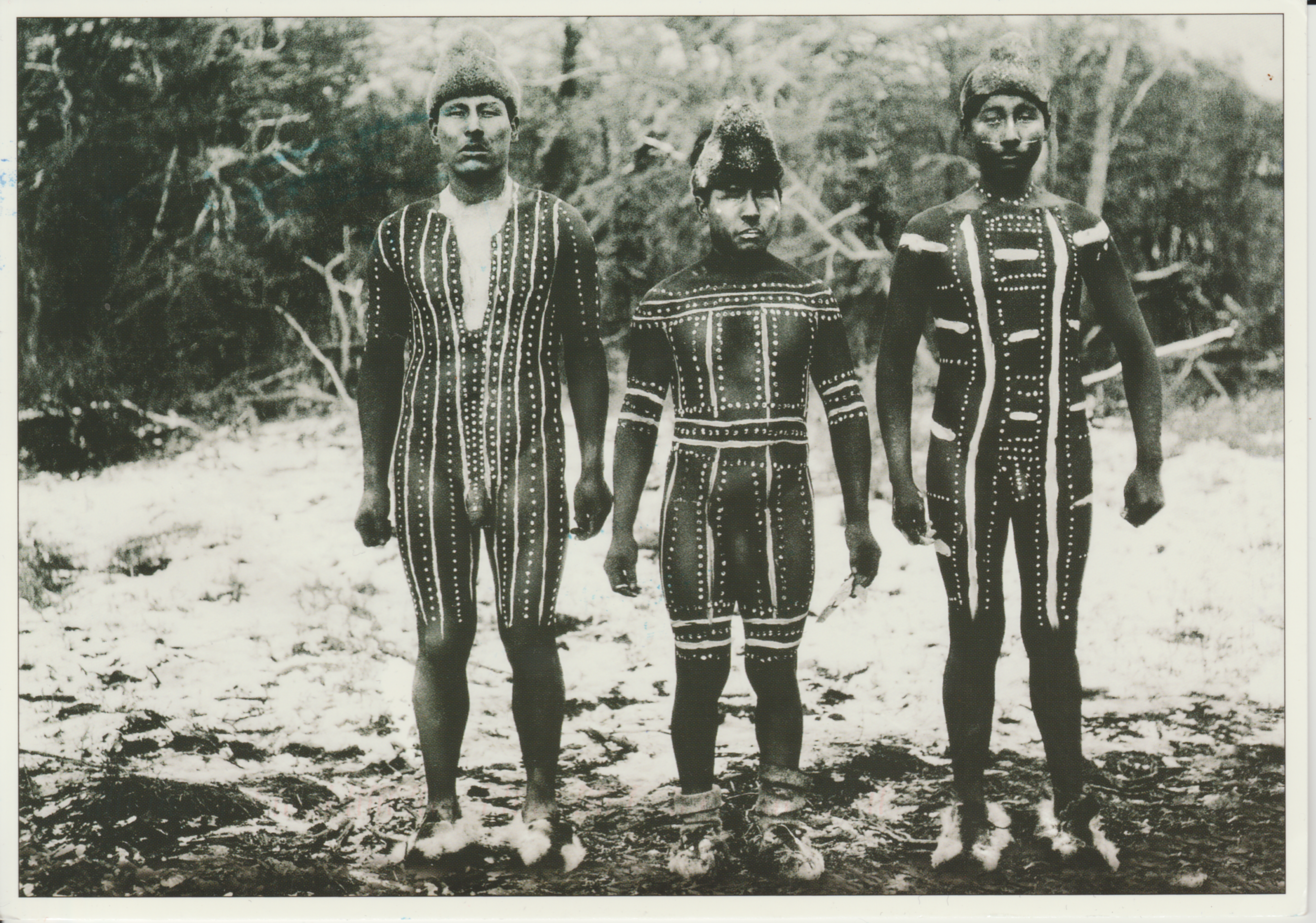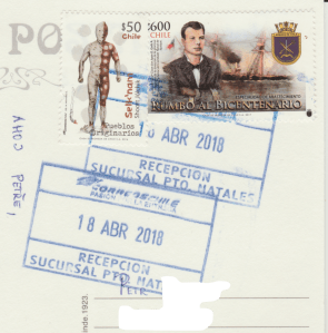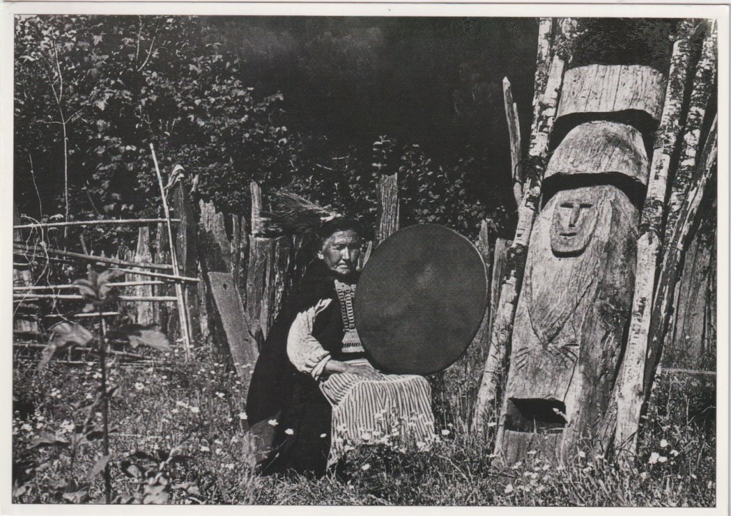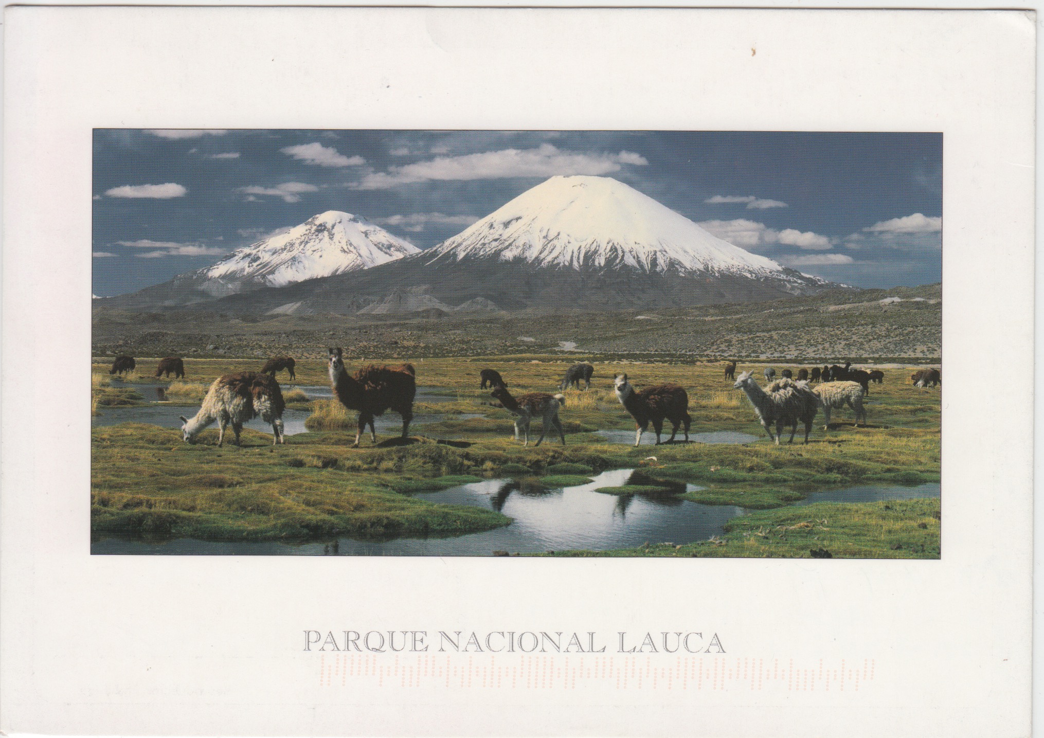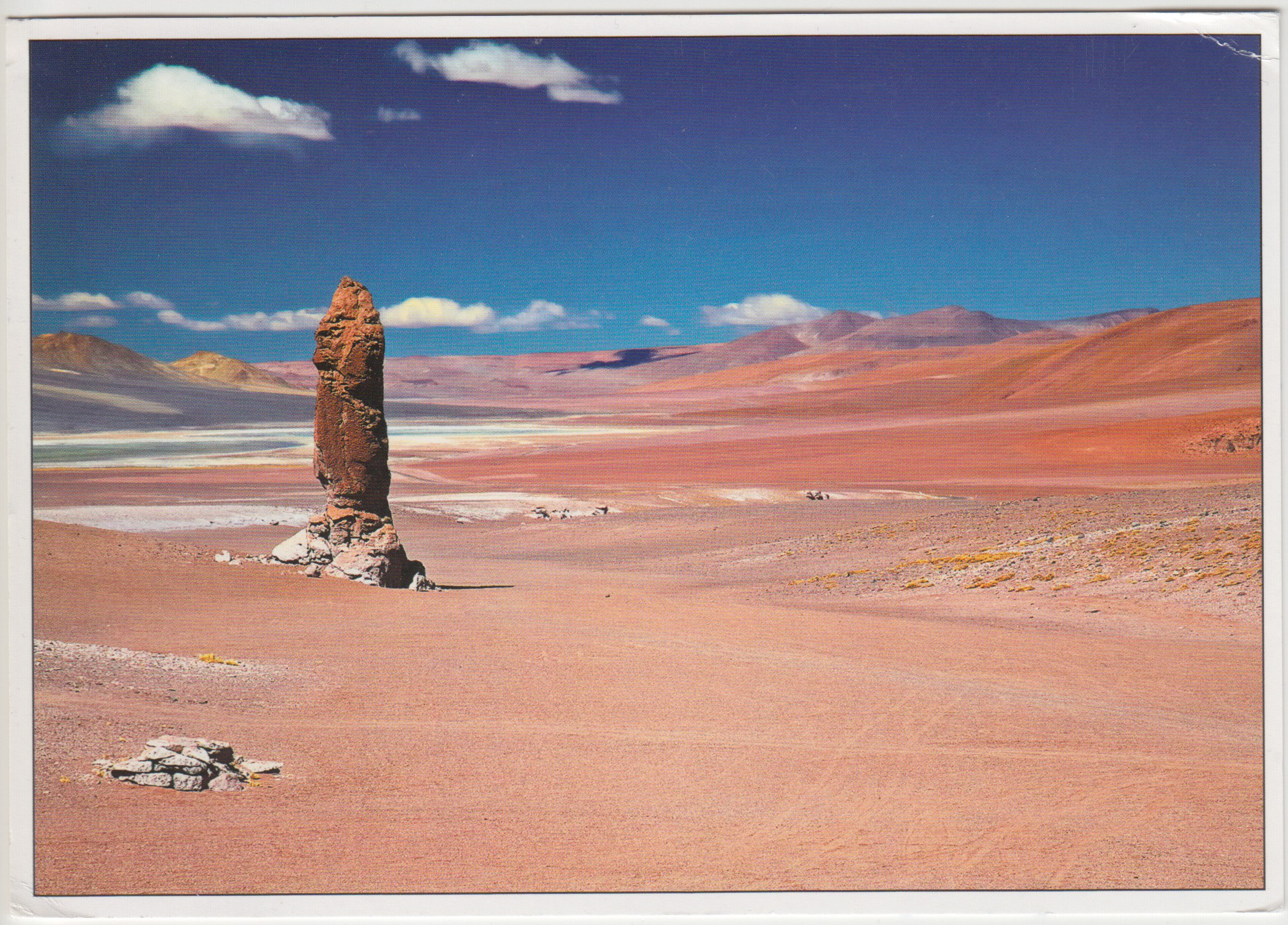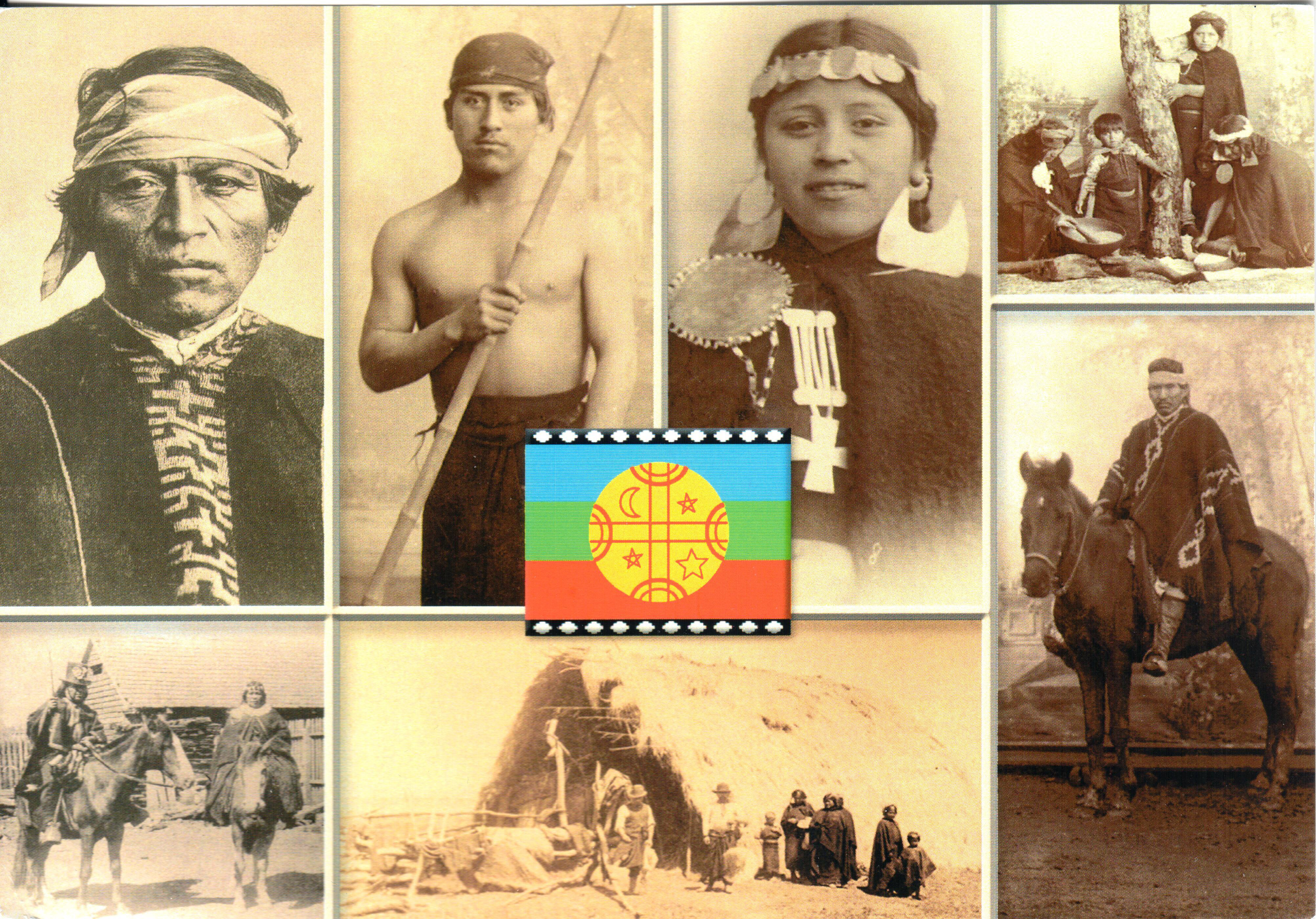 Na pohlednici se nachází mapučská šamanka, hrající na tradiční rituální buben, kultrun. Vpravo se nachází jeden z klasických velmi prostých mapučských totemů, o nichž se věří, že představují brány mezi světy živých a mrtvých. V mapučské kultuře hrají ženy velmi významnou roli co se týče spirituality a šamanství. Na konci srpna 2025 jsem dostal tyto dvě krásné černobílé pohlednice od Moniky, která žije přímo ve městě Temuco v Araukánii a má po Mapuche velké pochopení a sympatizuje s nimi.