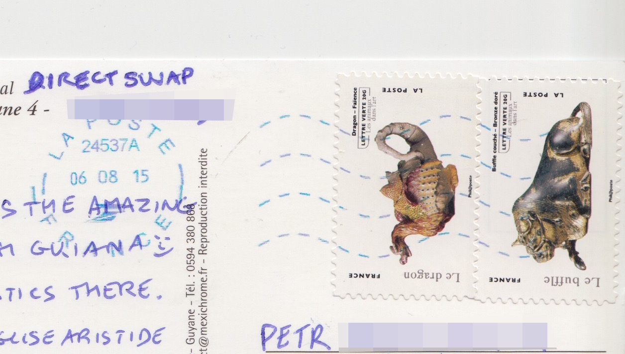 V srpnu 2019 jsem dostal svůj třetí pohled z Francouzské Guayany, který mi laskavě poslala cestovatelka Iva.